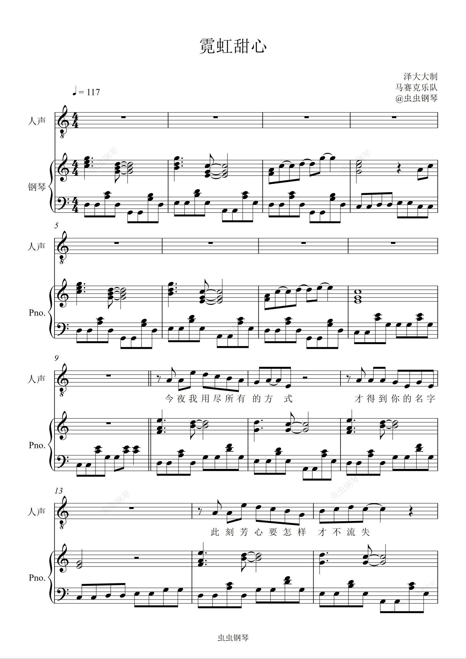 钢琴谱:霓虹甜心【女生C调弹唱附词】泽大大 马赛克乐队