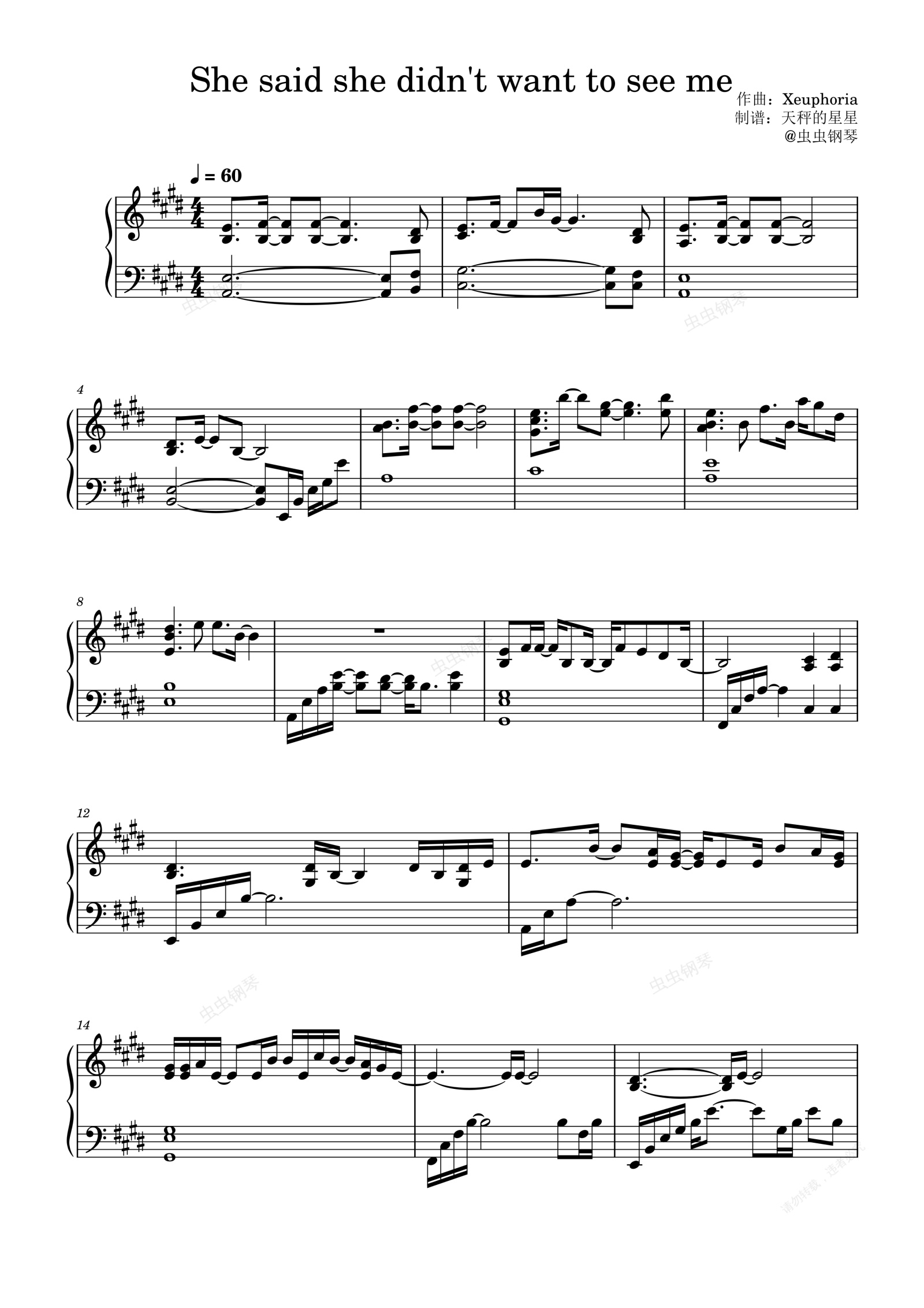 钢琴谱:She said she didn't want to see me--Xeuphoria