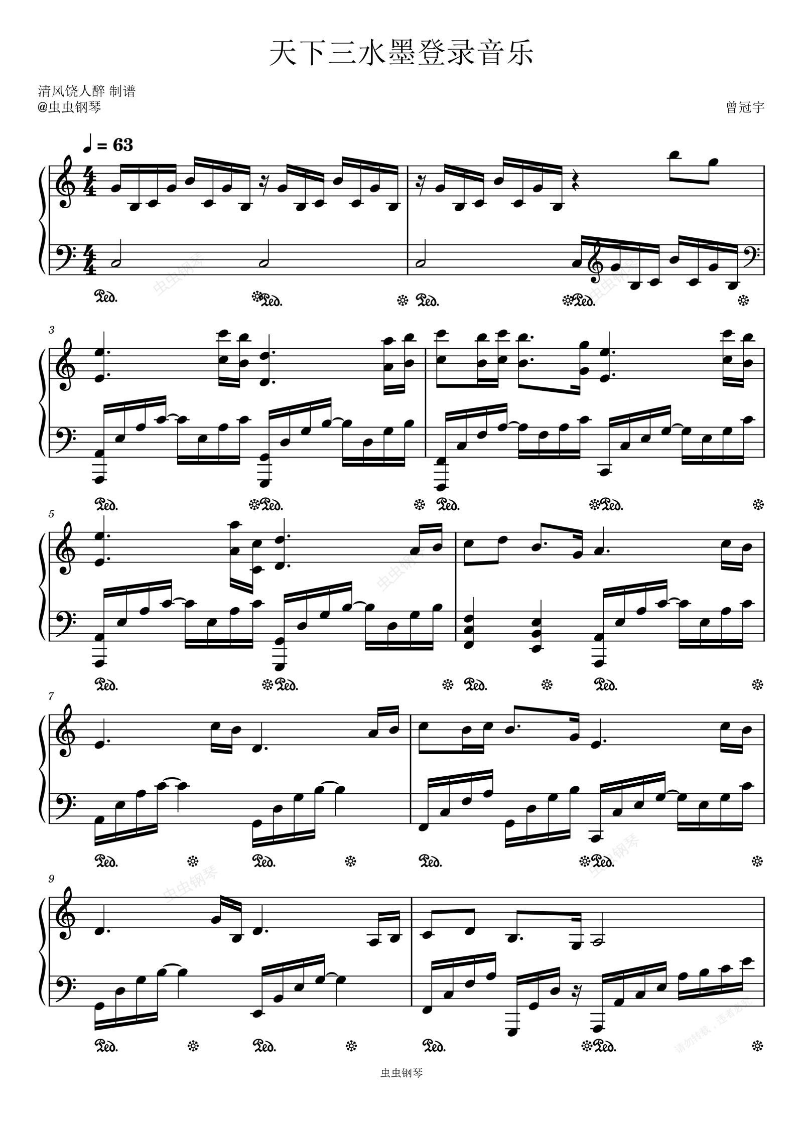 钢琴谱:网游天下三水墨登录bgm
