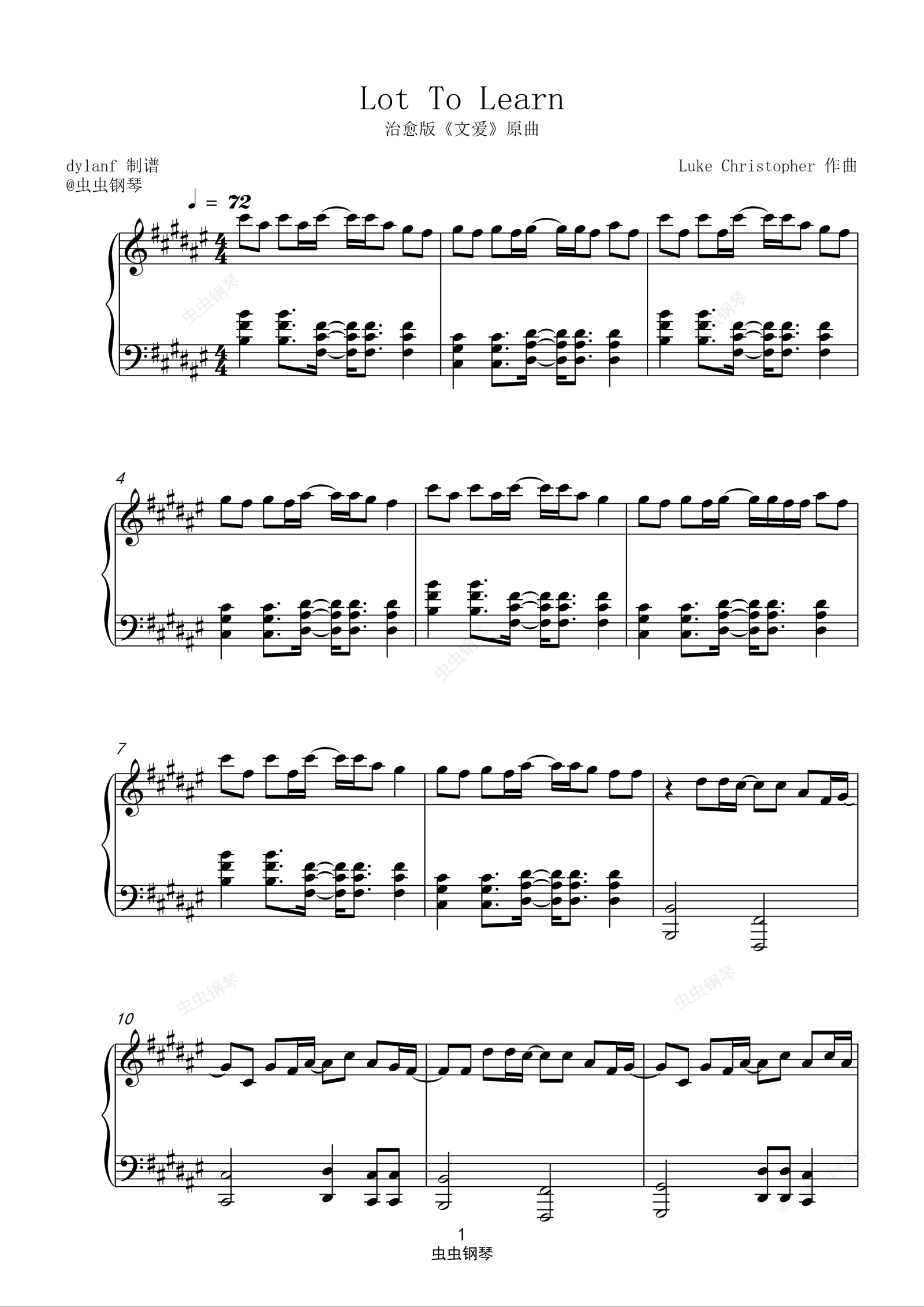 钢琴谱:Lot To Learn(治愈版)好听好弹《文爱》原曲Luke Chirstopher