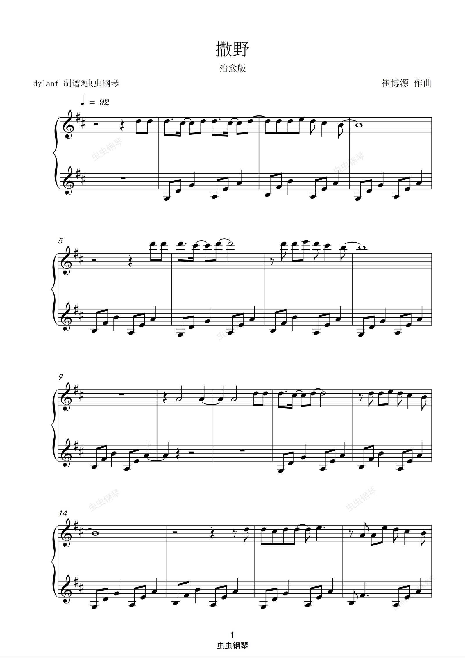 钢琴谱:撒野(治愈版)好听好弹《撒野》主题曲