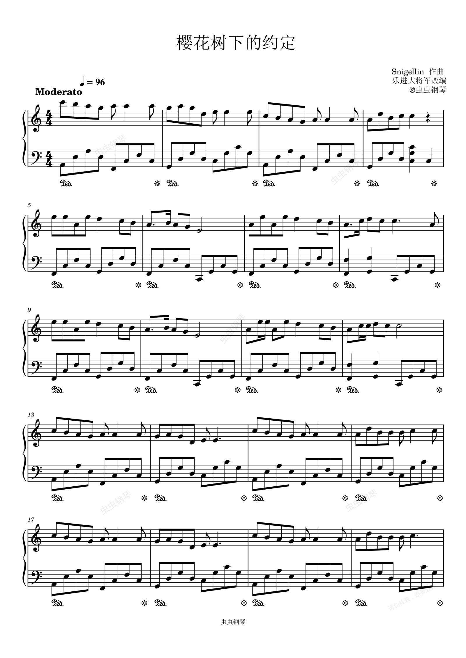 钢琴谱:樱花树下的约定(Sakura Tears)抖音完整版, C调简单易上手
