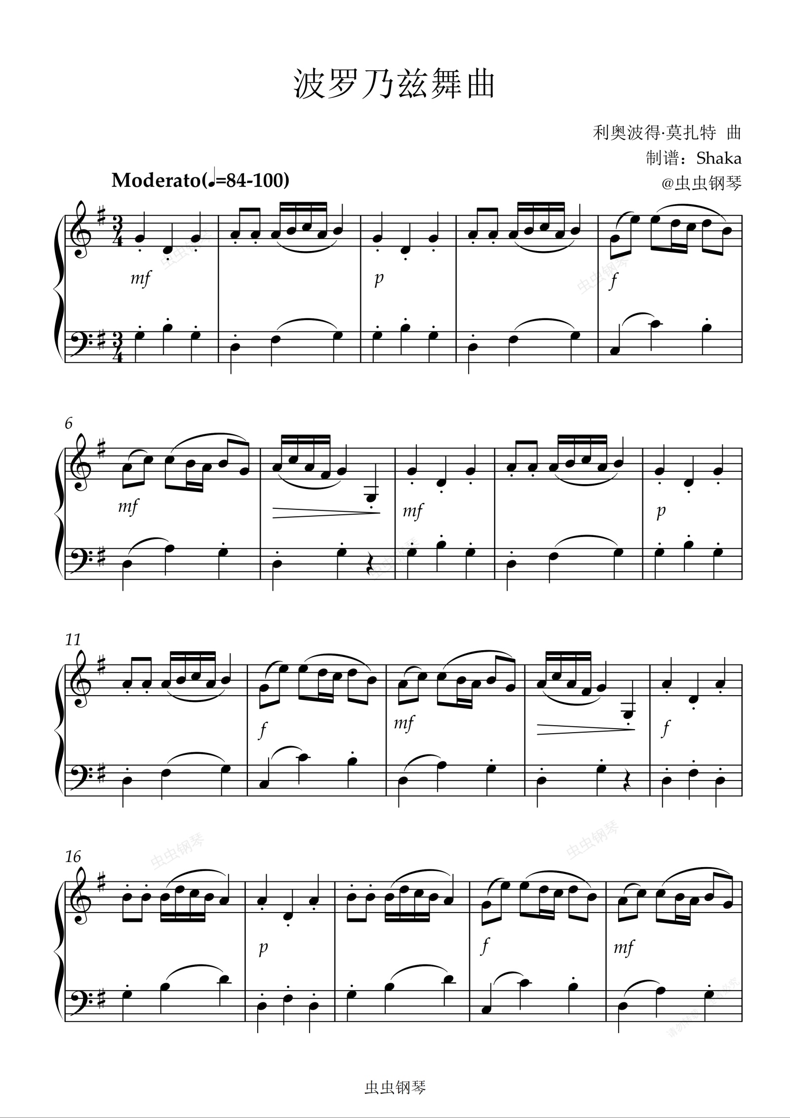 钢琴谱:G大调波罗乃兹舞曲 上海音乐学院2020版1级考级曲目