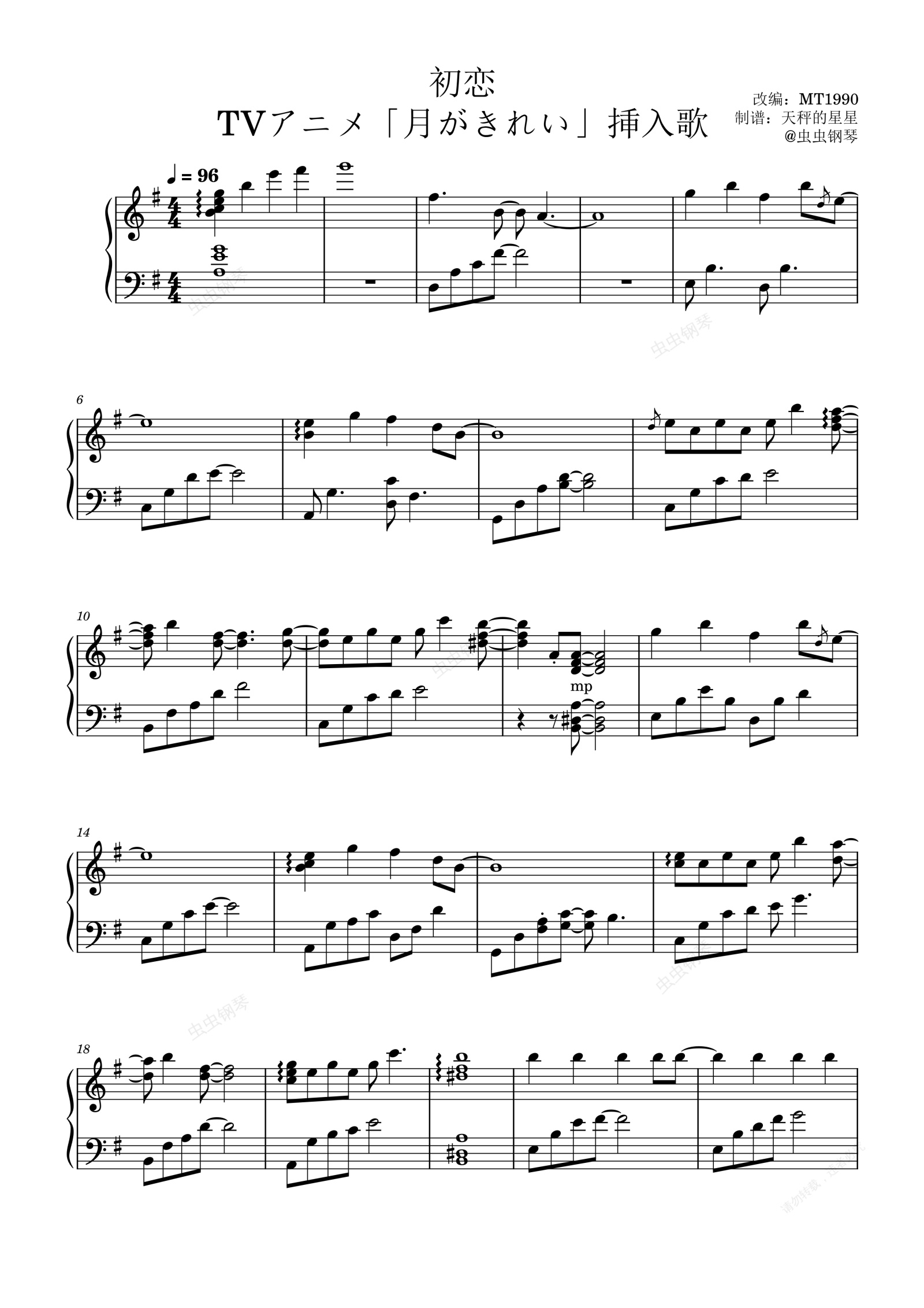钢琴谱:初恋--动画《月色真美》插曲(TVアニメ「月がきれい」挿入歌)MT1990版