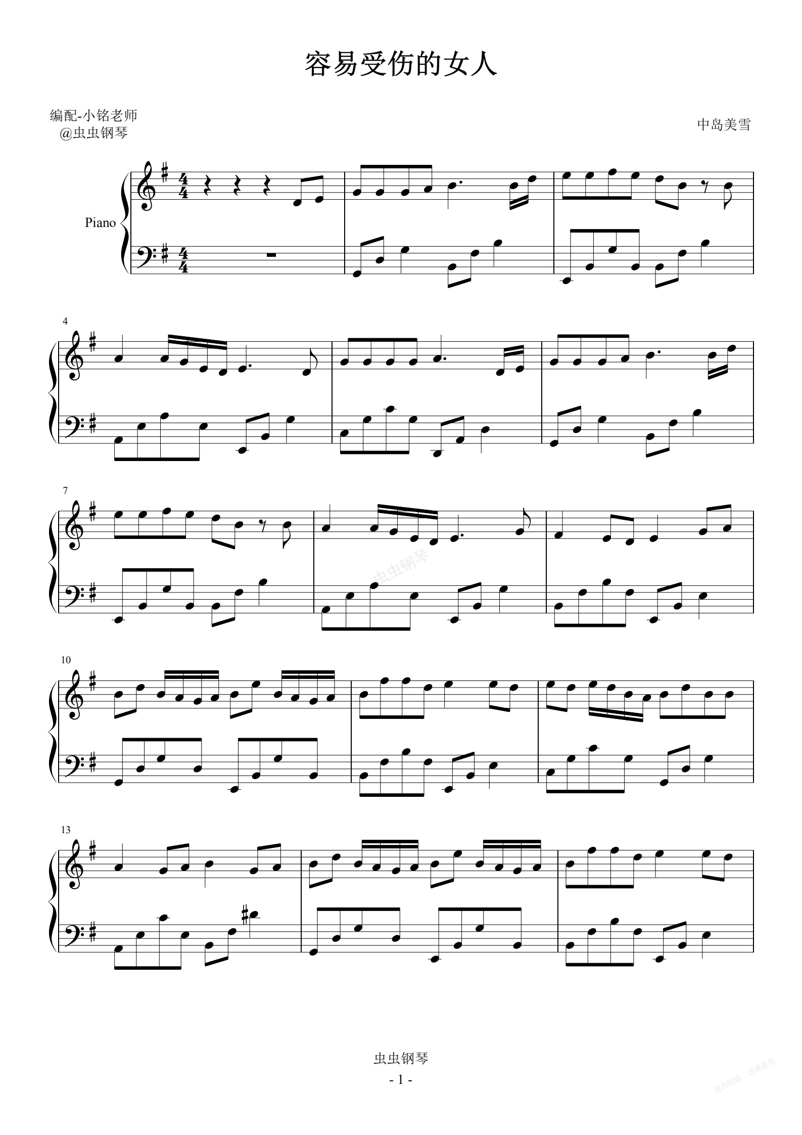 钢琴谱:容易受伤的女人 【怀旧 简易】