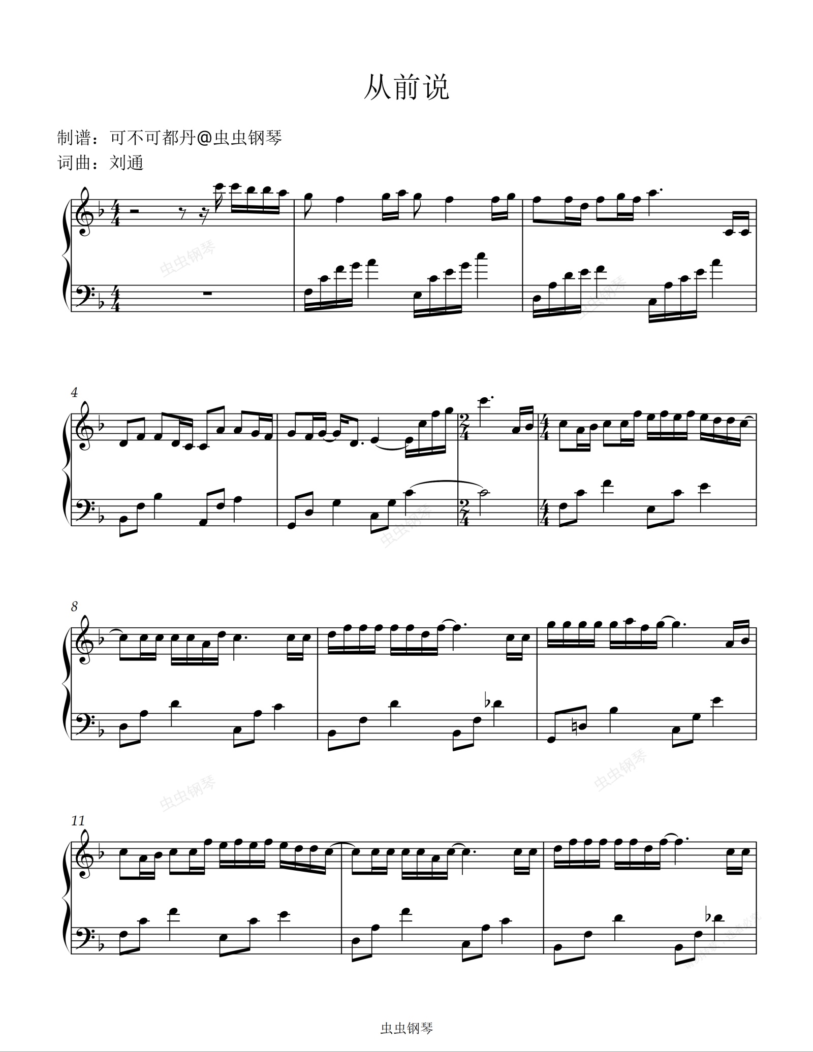 钢琴谱:小阿七《从前说》抖音热门单曲