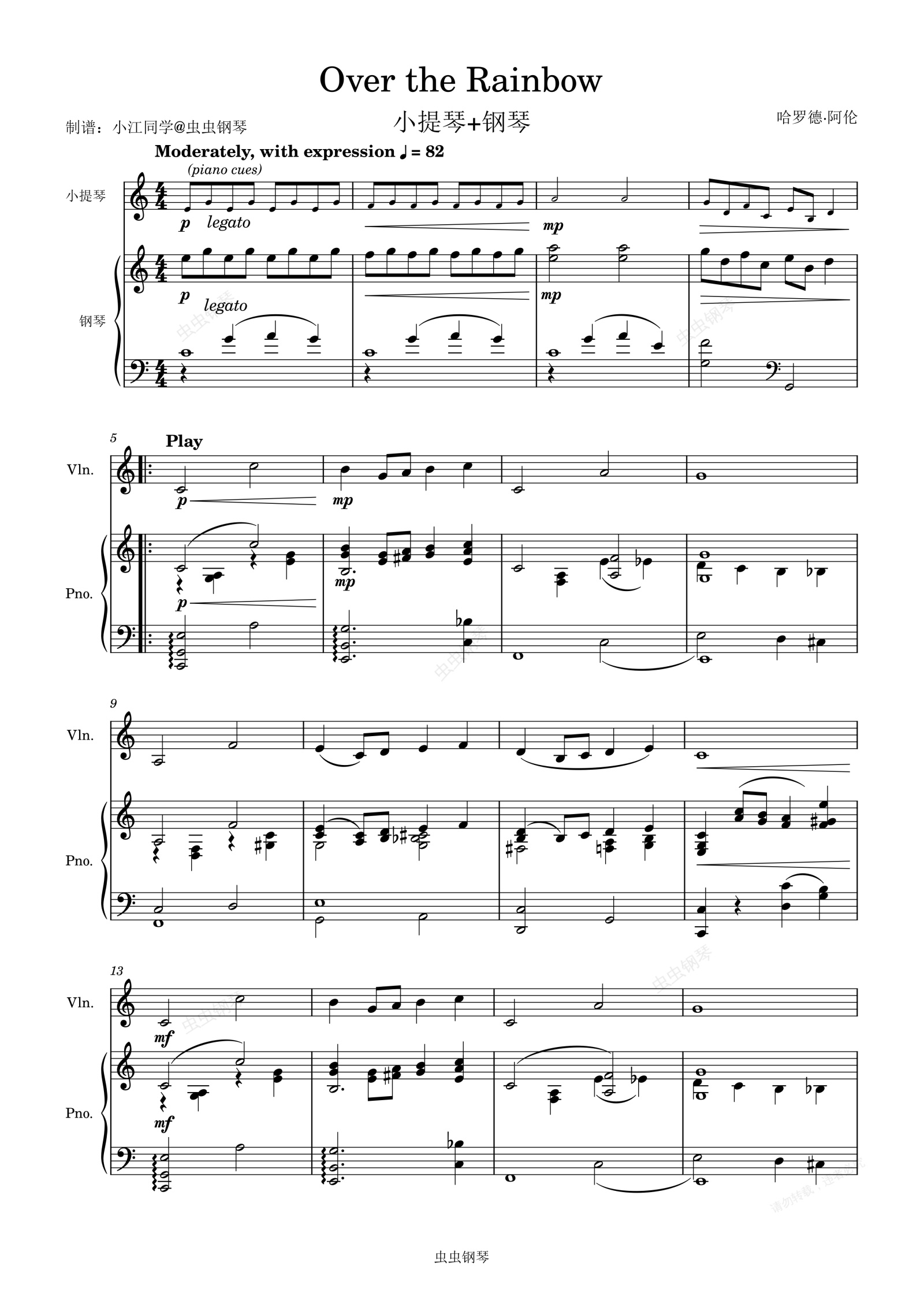 钢琴谱:Over the Rainbow 小提琴+钢琴