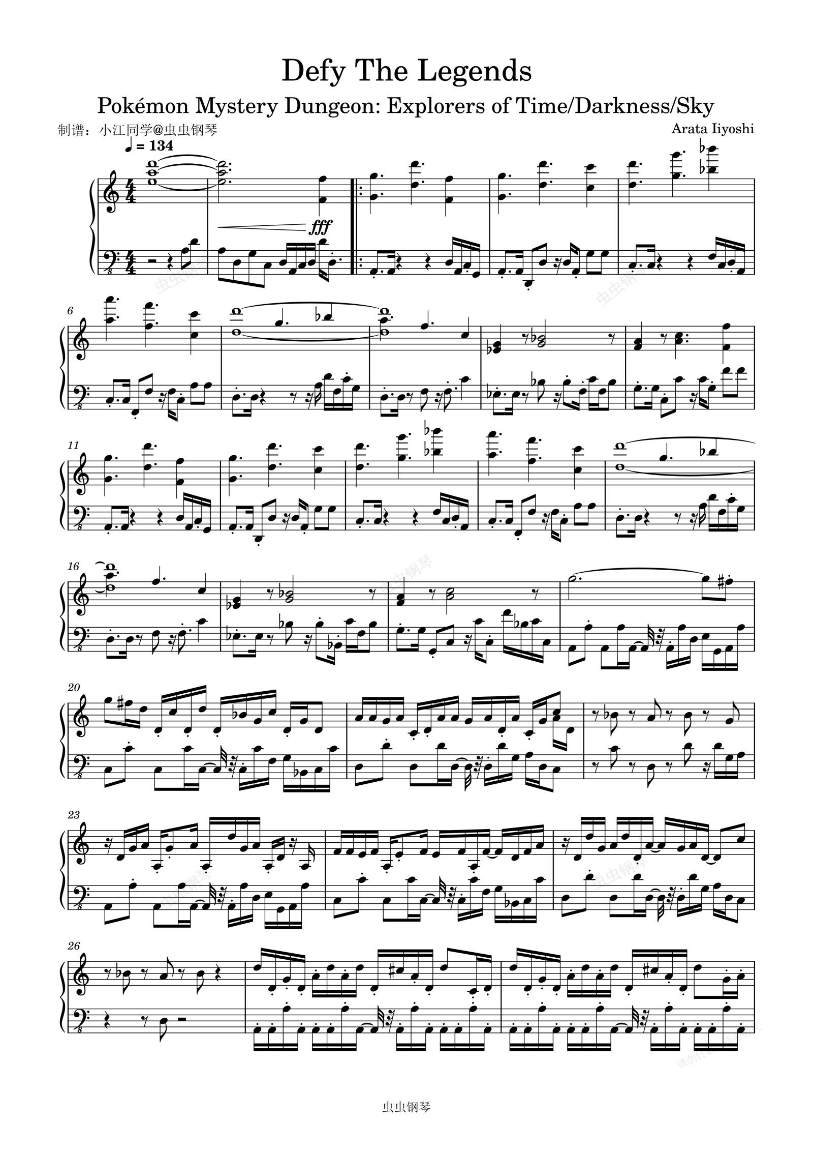 钢琴谱:Defy The Legends Arata Iiyoshi