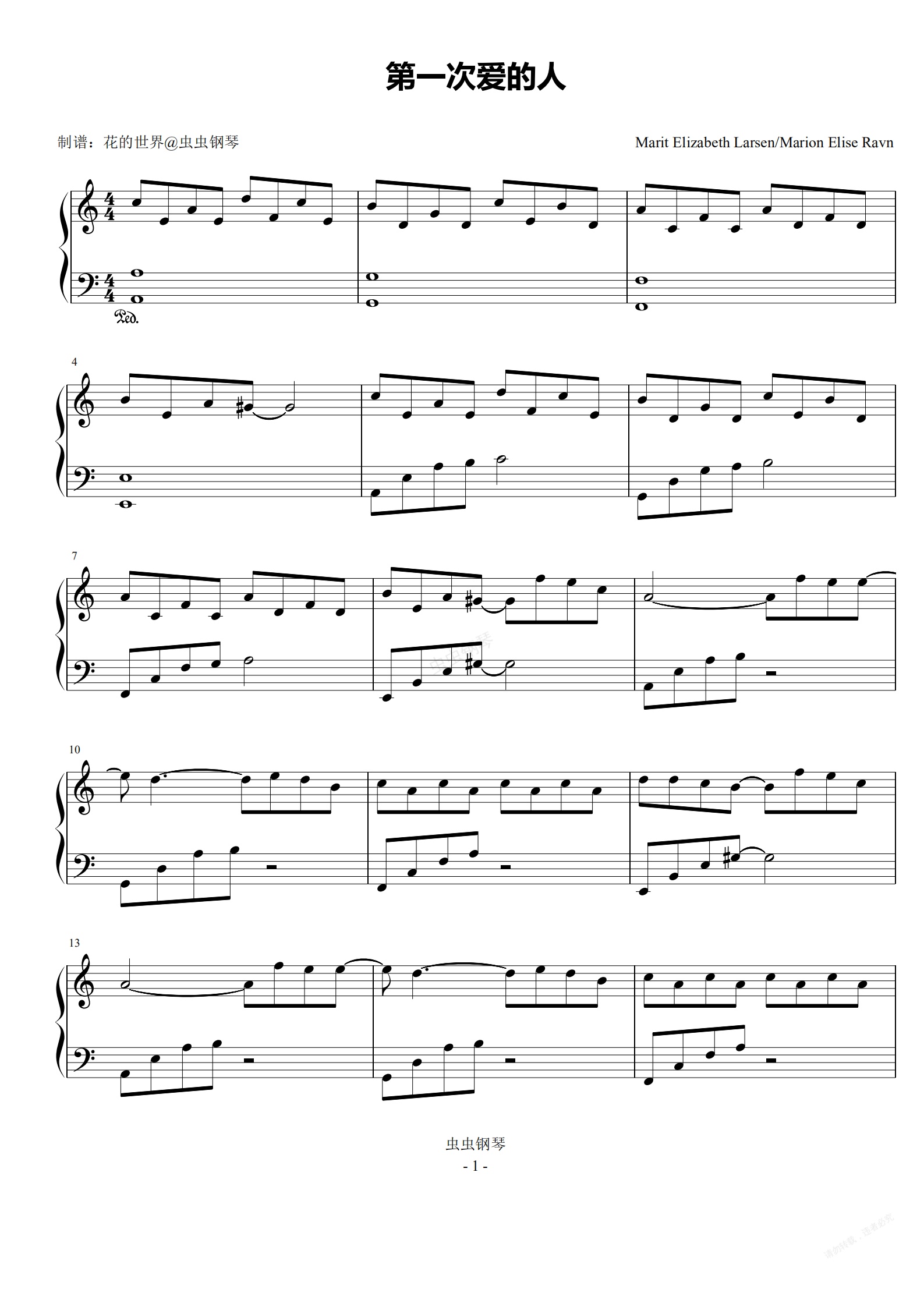 钢琴谱:第一次爱的人 C调简易版本 王心凌