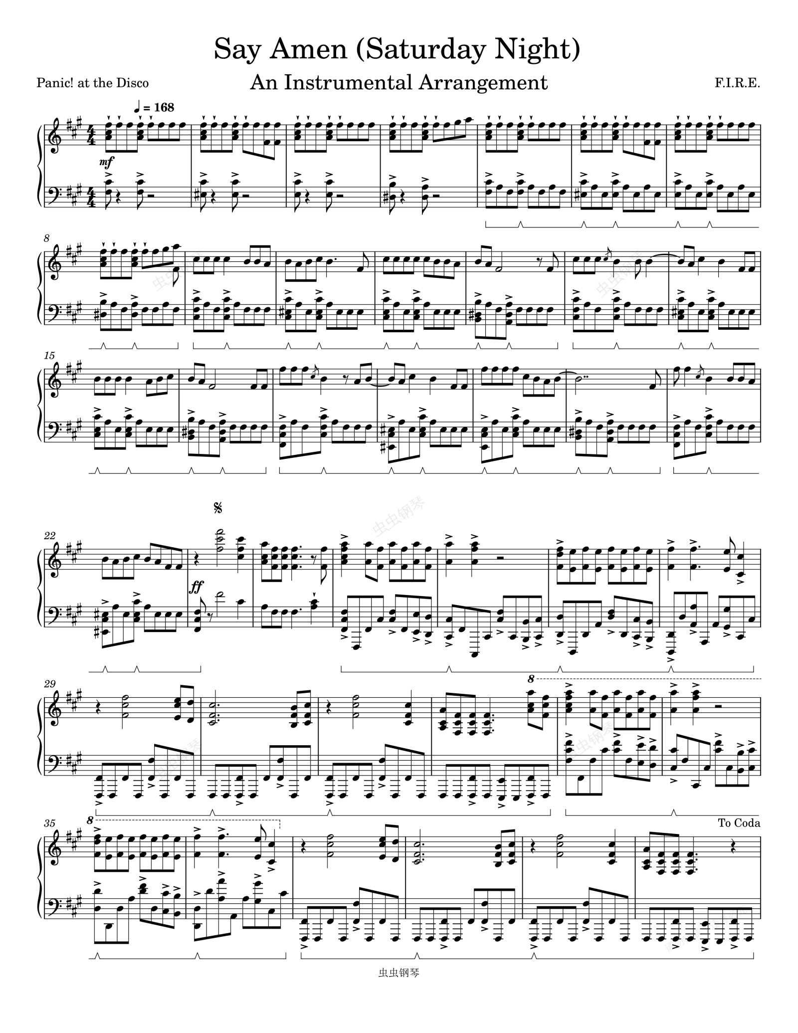 钢琴谱:Say Amen (Saturday Night)-Panic! At The Disco