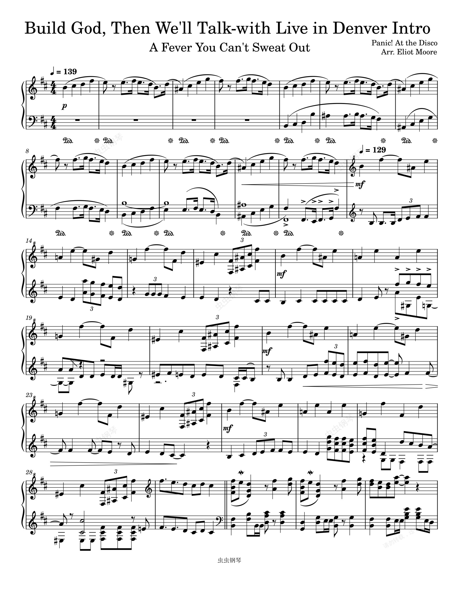 钢琴谱:Panic! At The Disco- A Fever You Can't Sweat Out