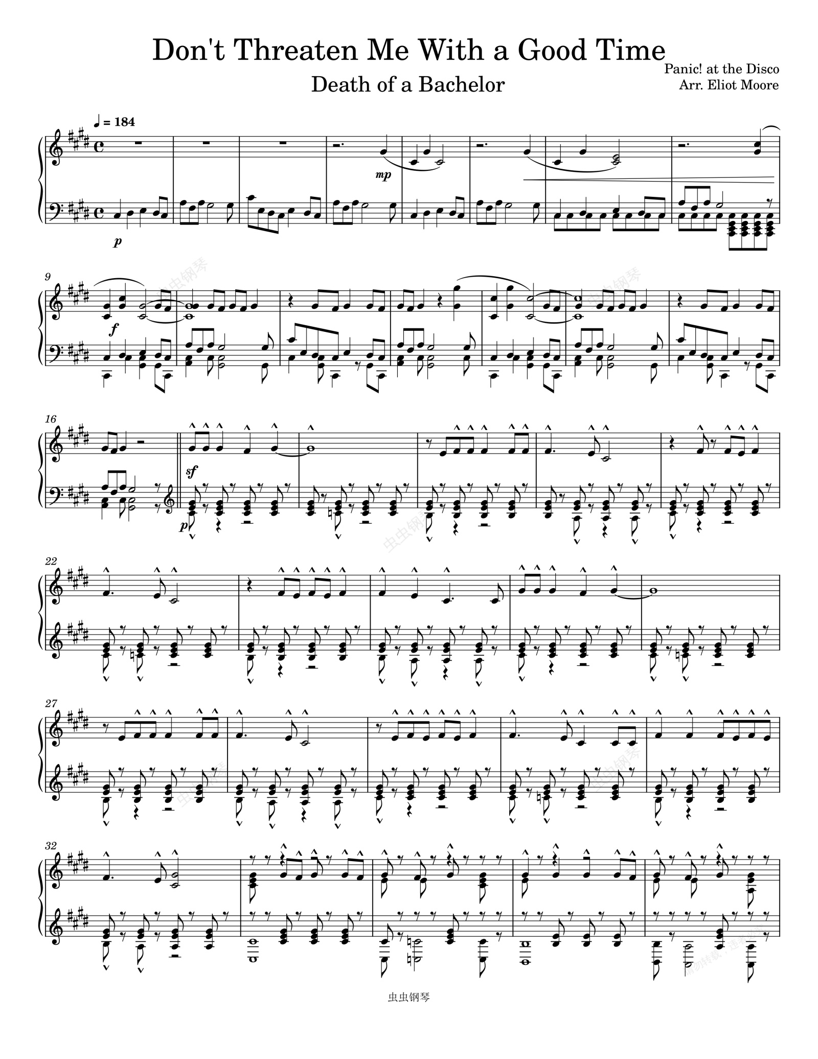钢琴谱:Don't Threaten Me With a Good Time-Panic! At The Disco