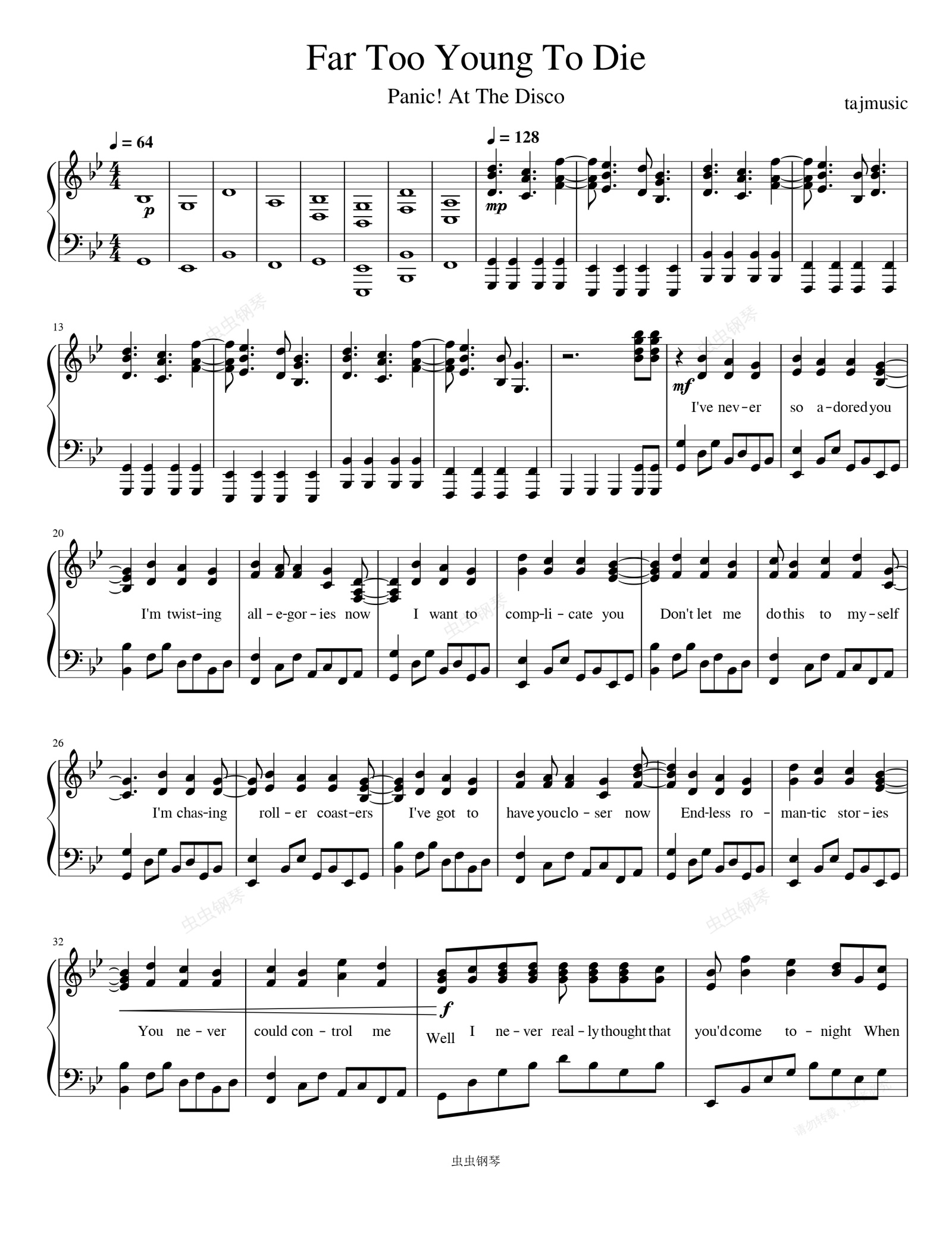 钢琴谱:Far Too Young To Die-Panic! At The Disco