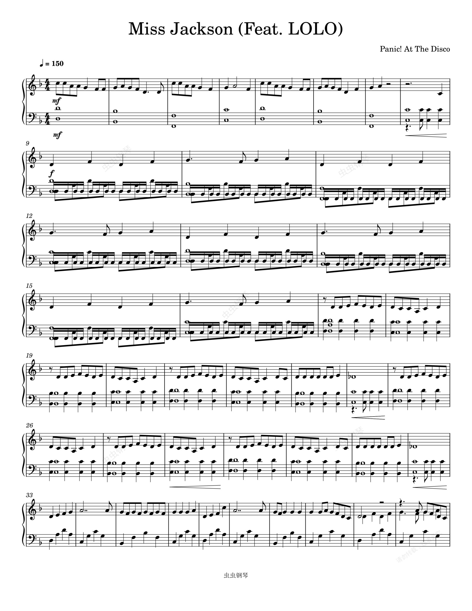 钢琴谱:Miss Jackson (Feat. LOLO)-Panic! At The Disco