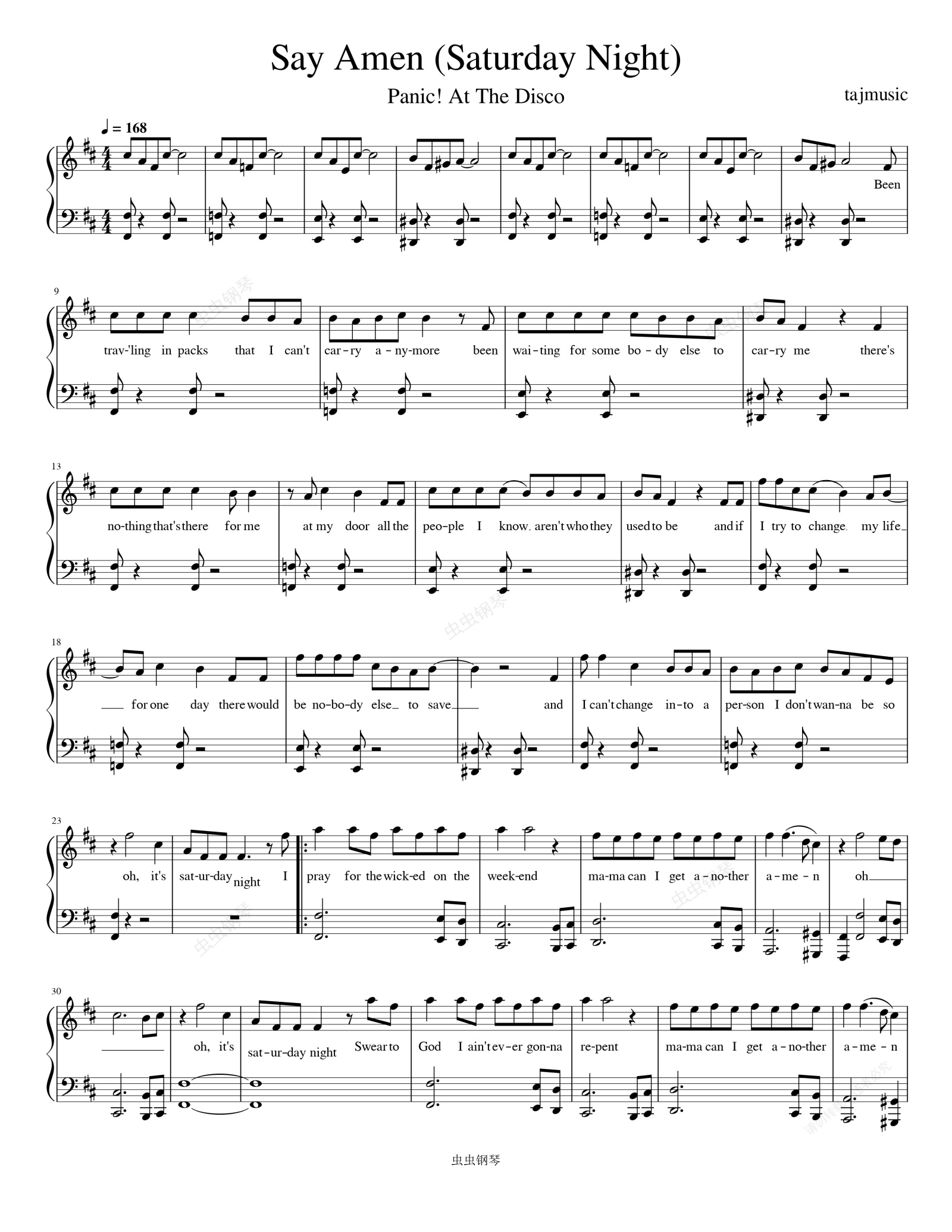 钢琴谱:Say Amen (Saturday Night)- Panic! At The Disco