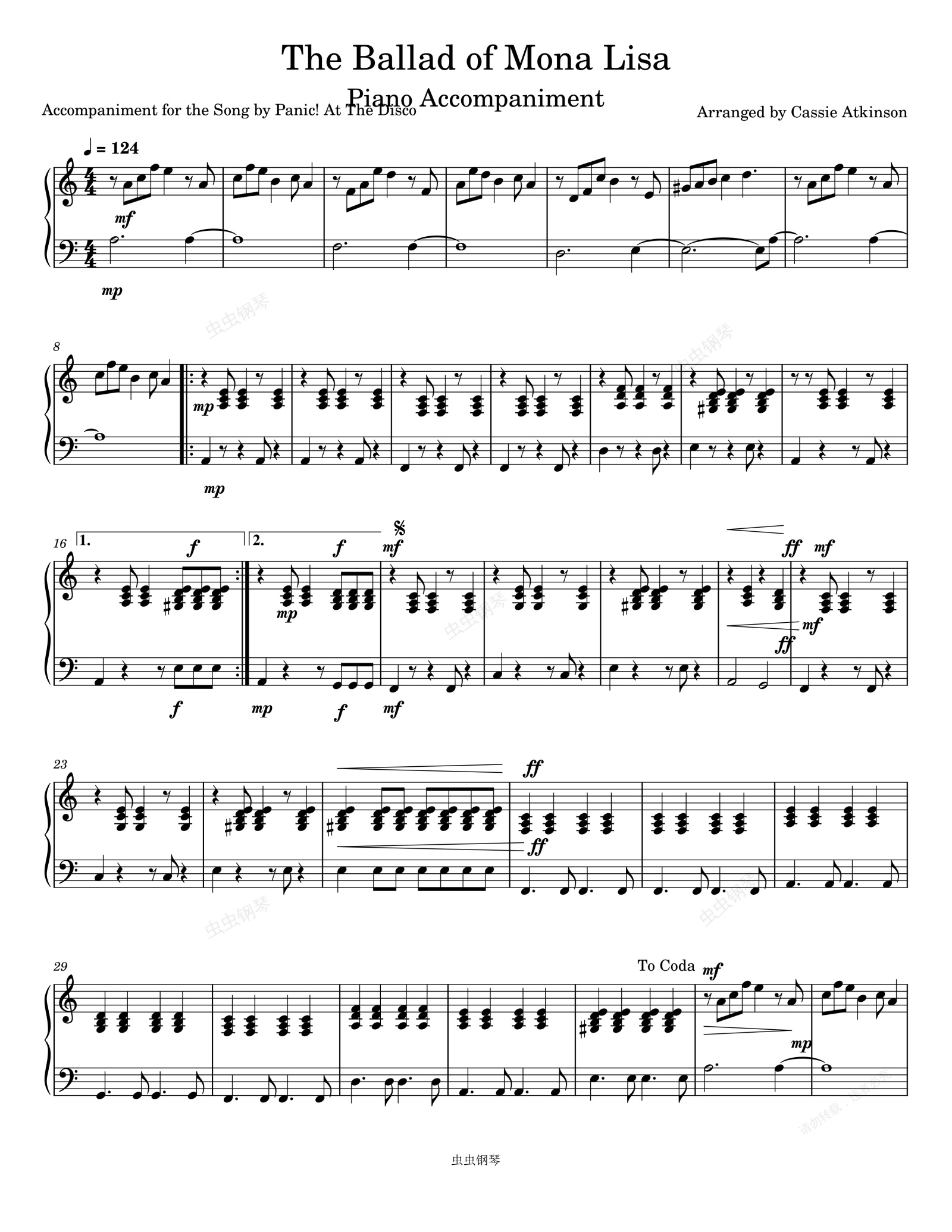 钢琴谱:The Ballad of Mona Lisa-Panic! At The Disco