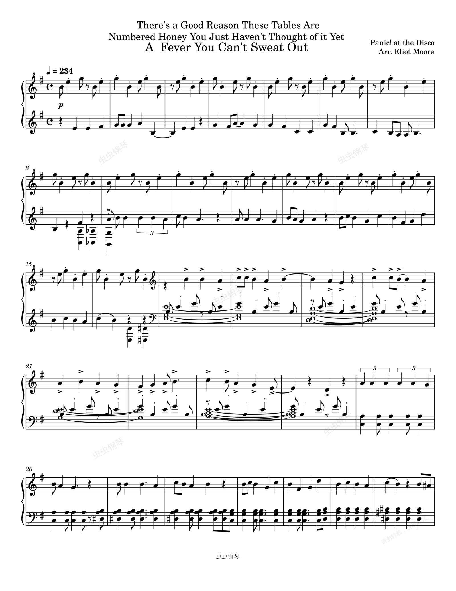 钢琴谱:A Fever You Can't Sweat Out-Panic! At The Disco
