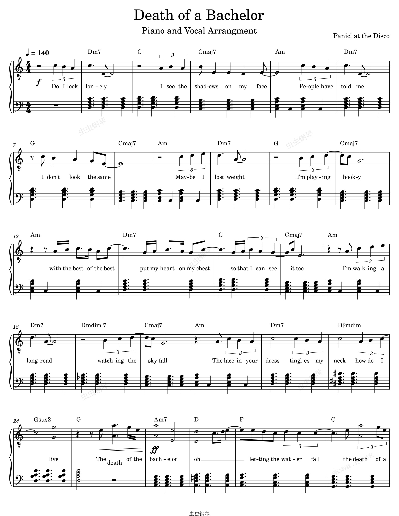 钢琴谱:Death of a Bachelor-Panic! At The Disco