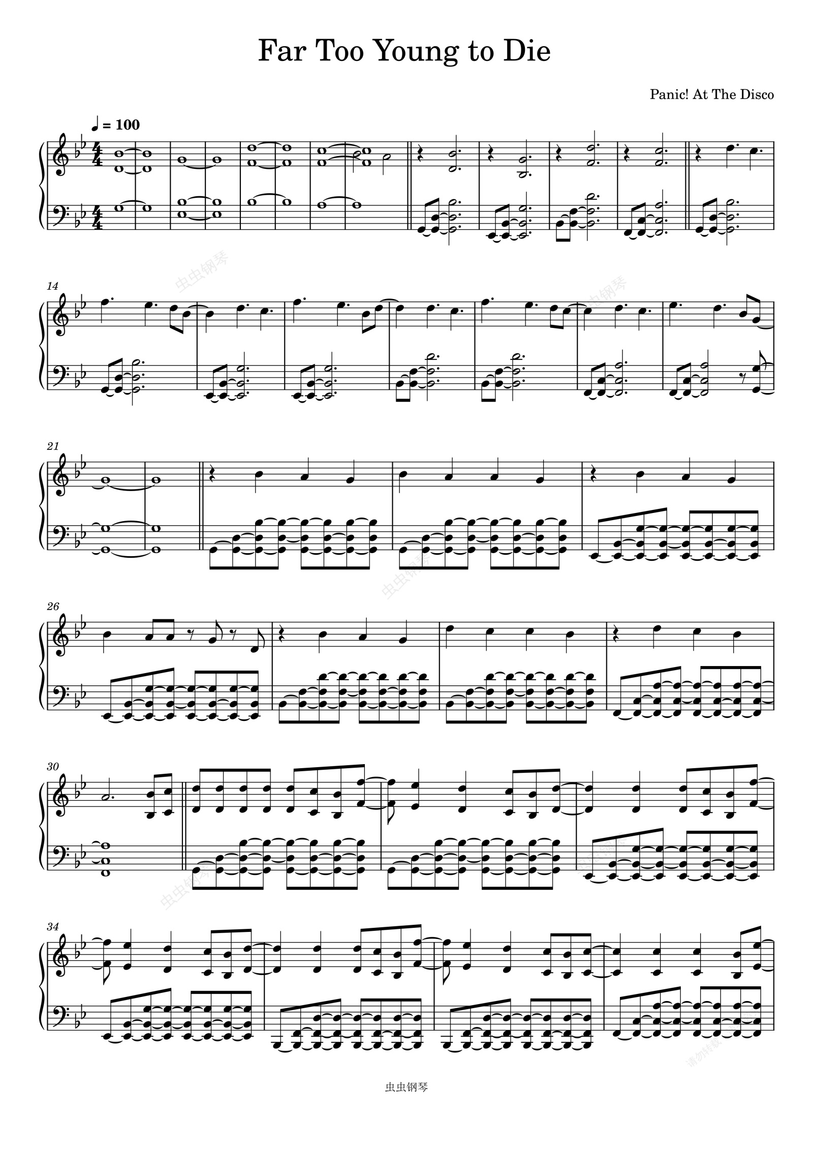 钢琴谱:Far Too Young to Die-Panic! At The Disco