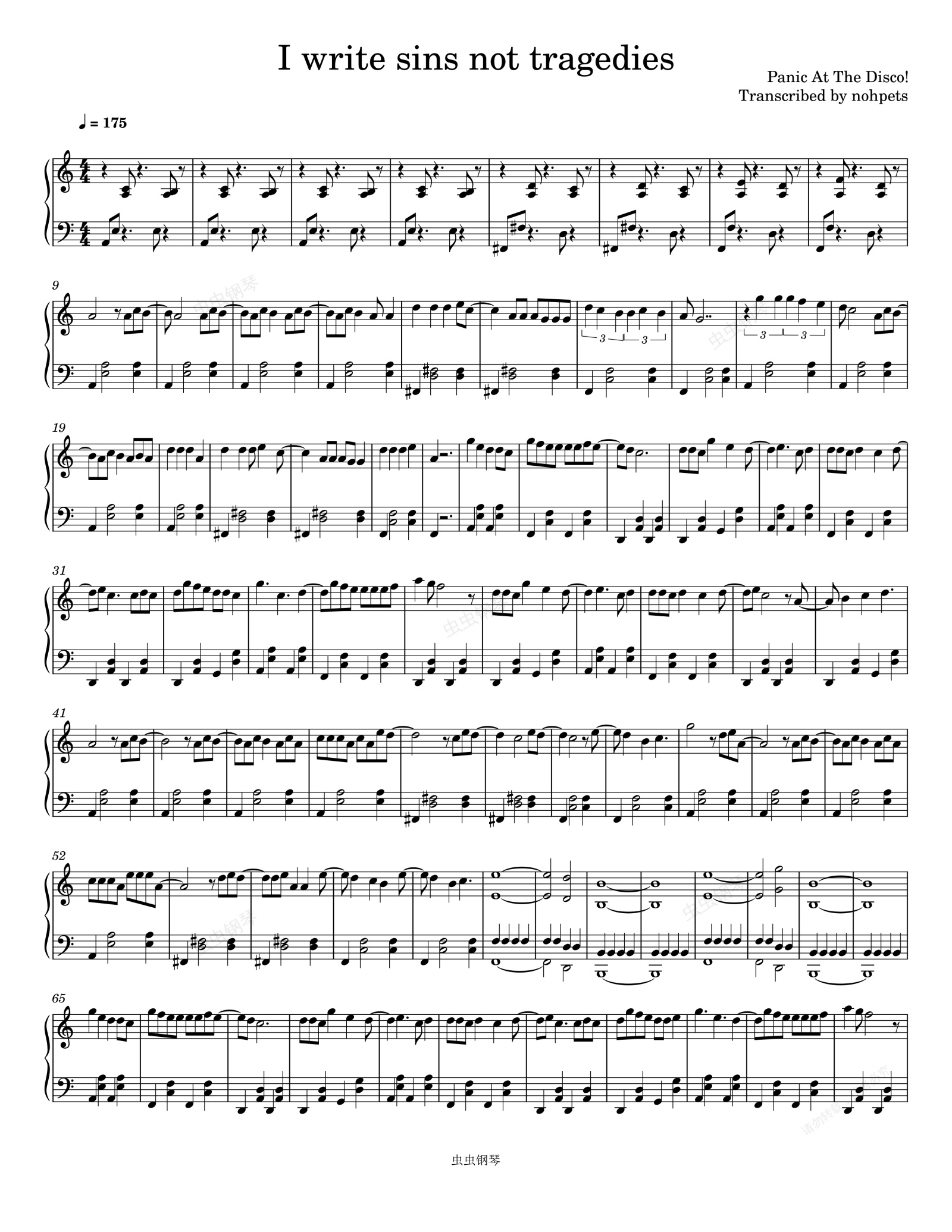 钢琴谱:Panic! At The Disco-I Write Sins Not Tragedies