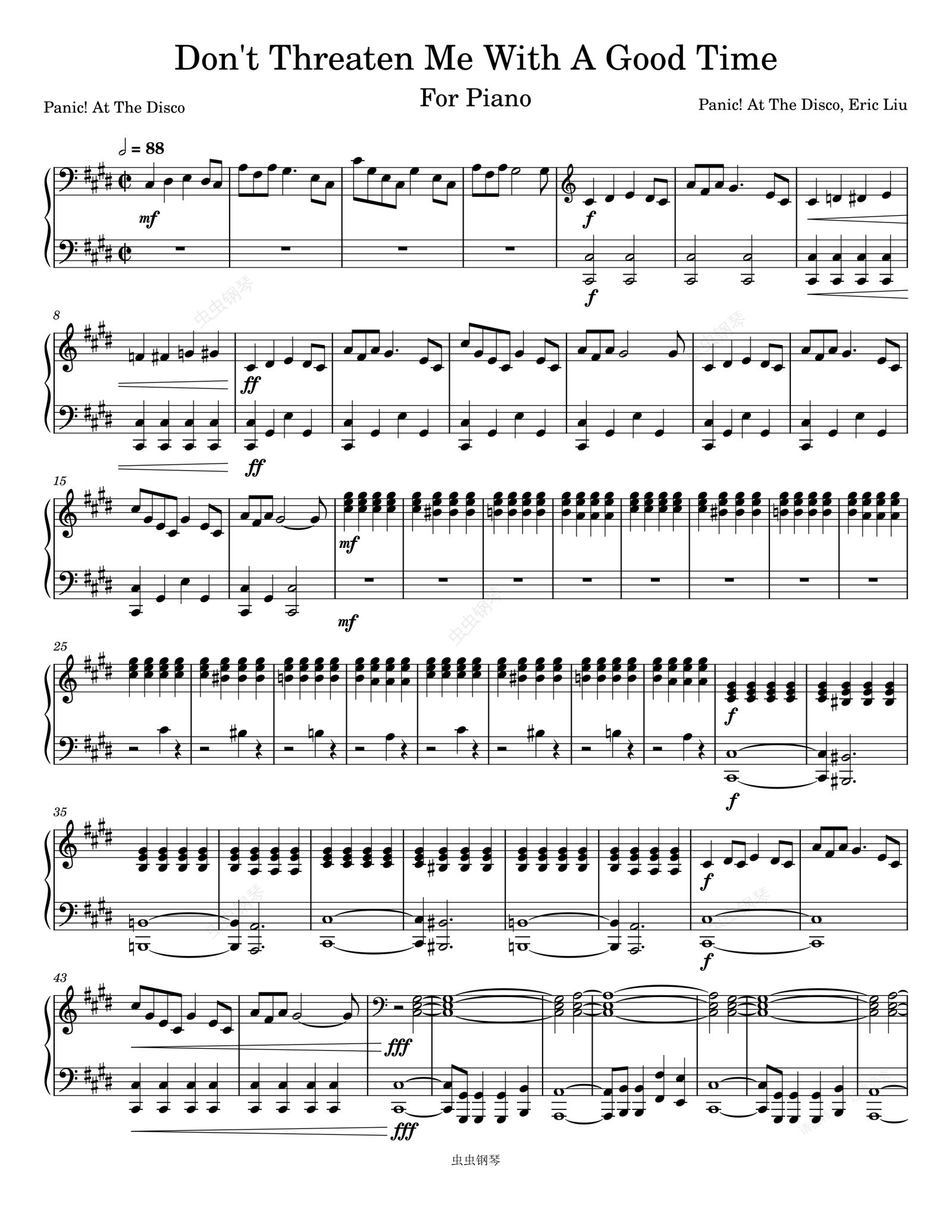 钢琴谱:Don't Threaten Me With A Good Time-Panic! At The Disco