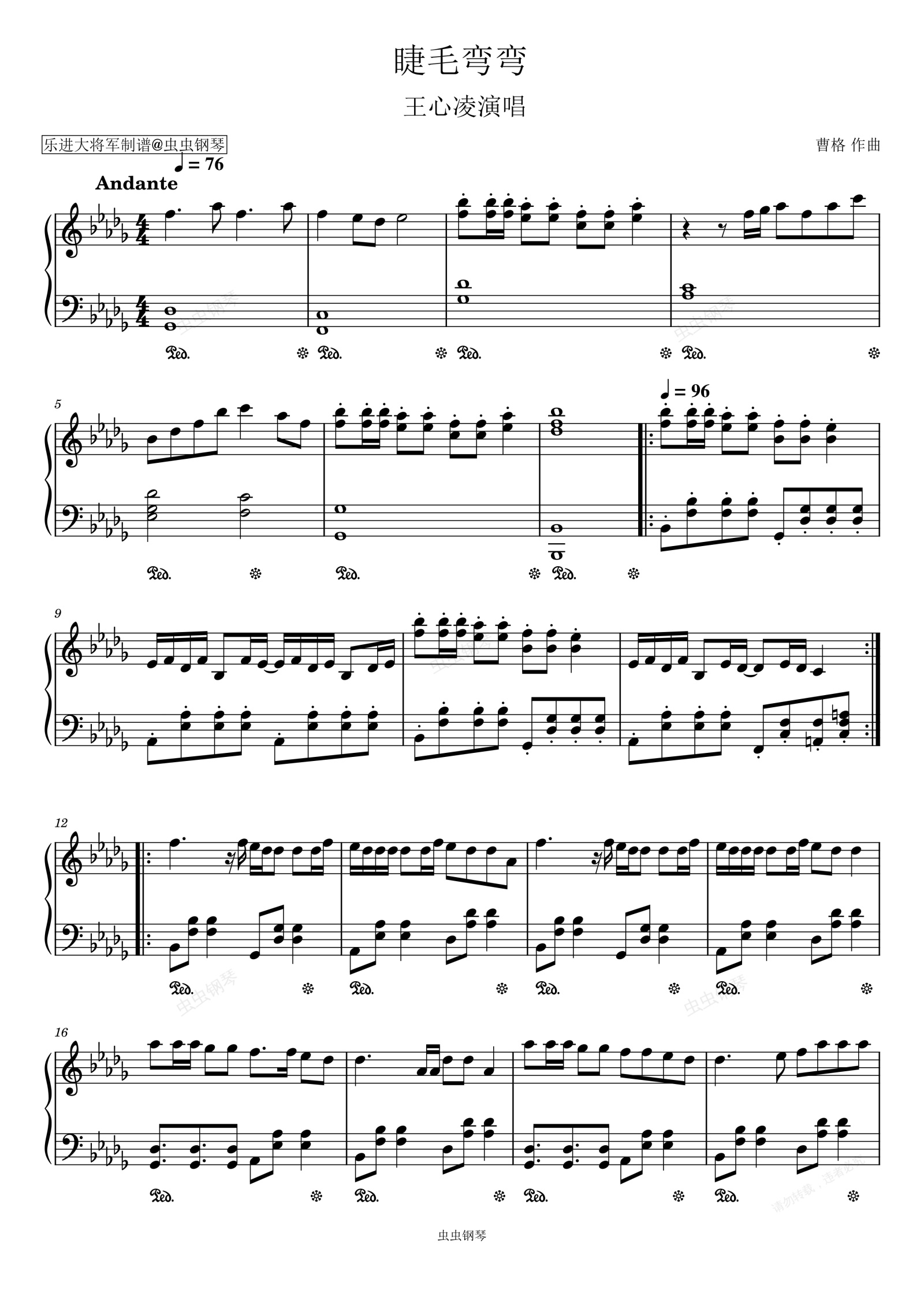 钢琴谱:睫毛弯弯 王心凌演唱 原调