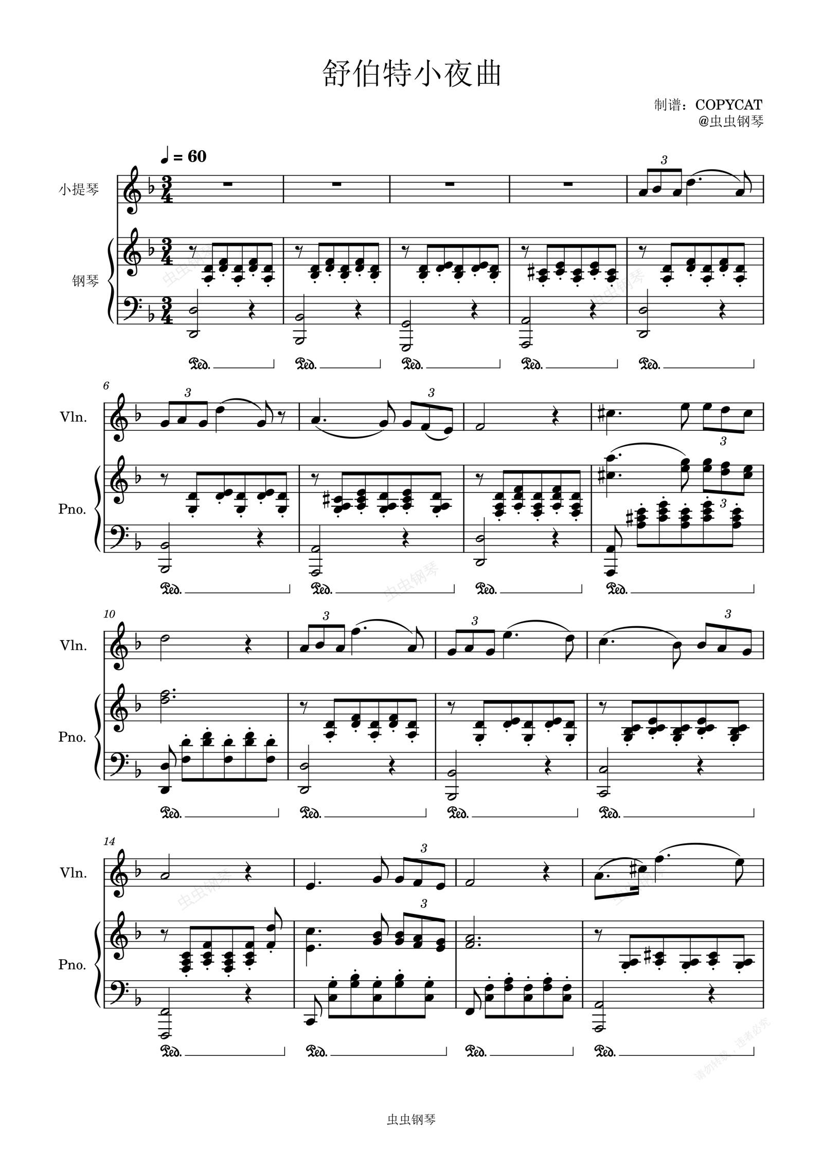 钢琴谱:舒伯特小夜曲(小提琴 钢琴)