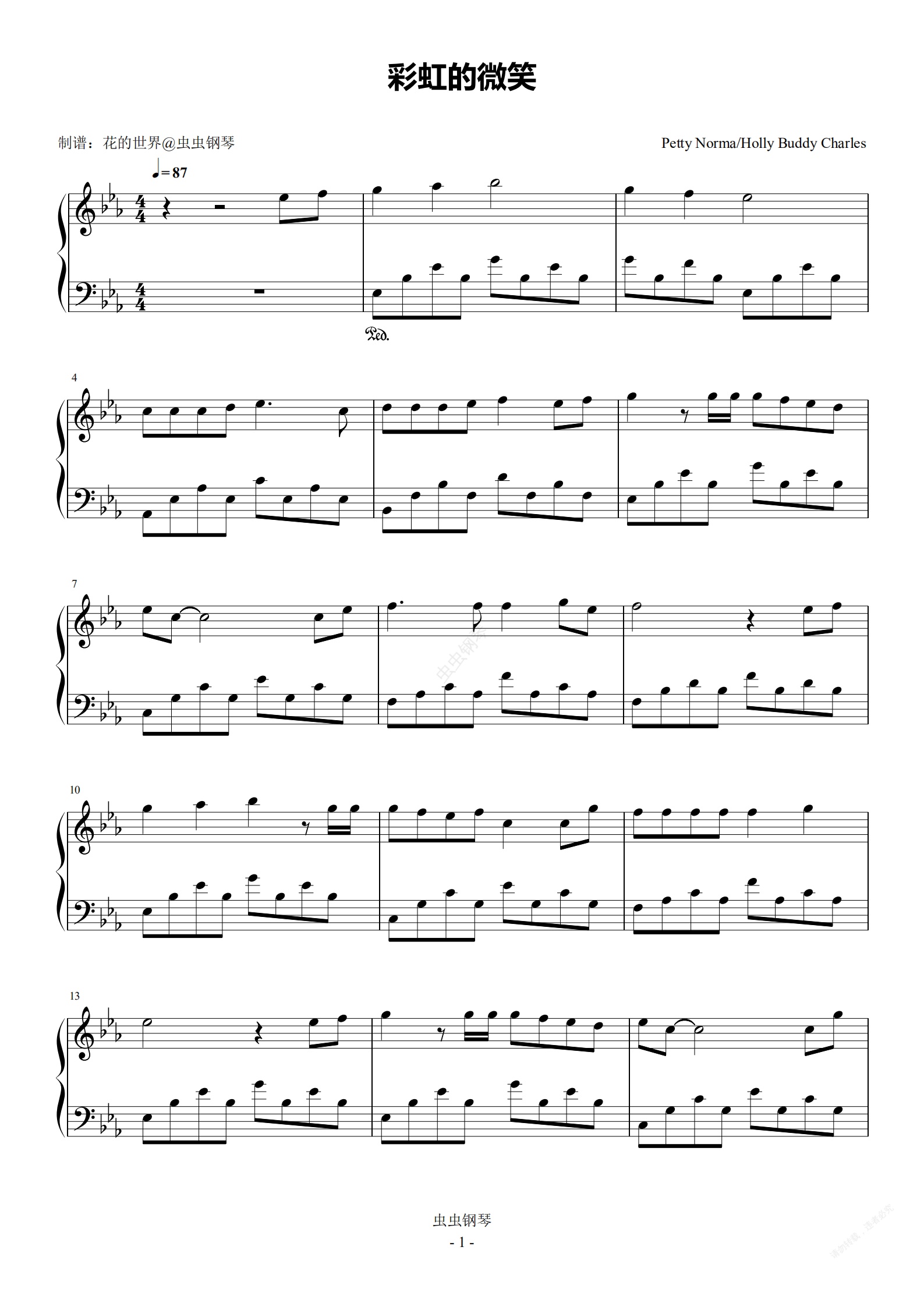 钢琴谱:彩虹的微笑 原调简易版 王心凌