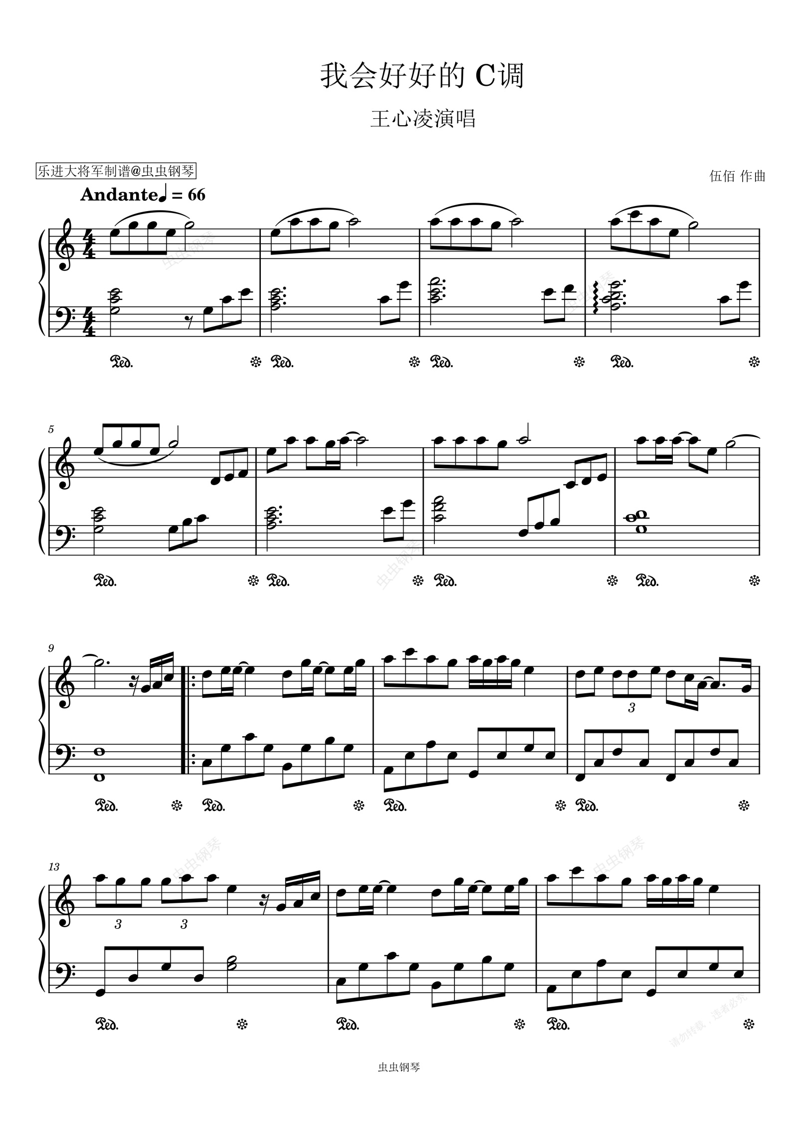 钢琴谱:王心凌《我会好好的》 C调简易版