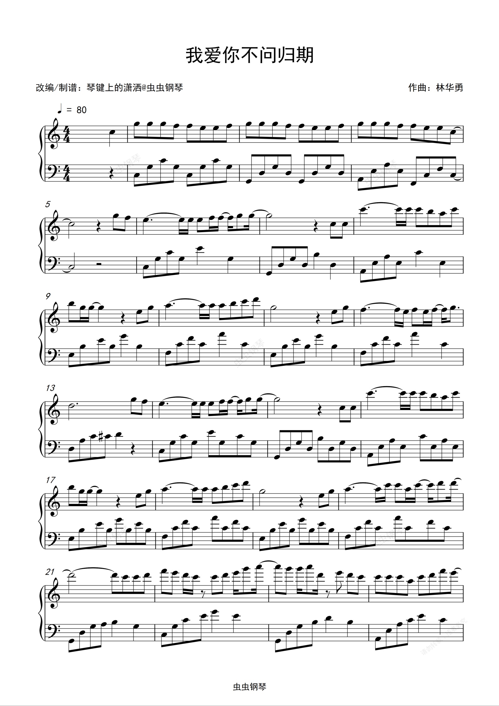 钢琴谱:《我爱你不问归期》-白小白-C调独奏