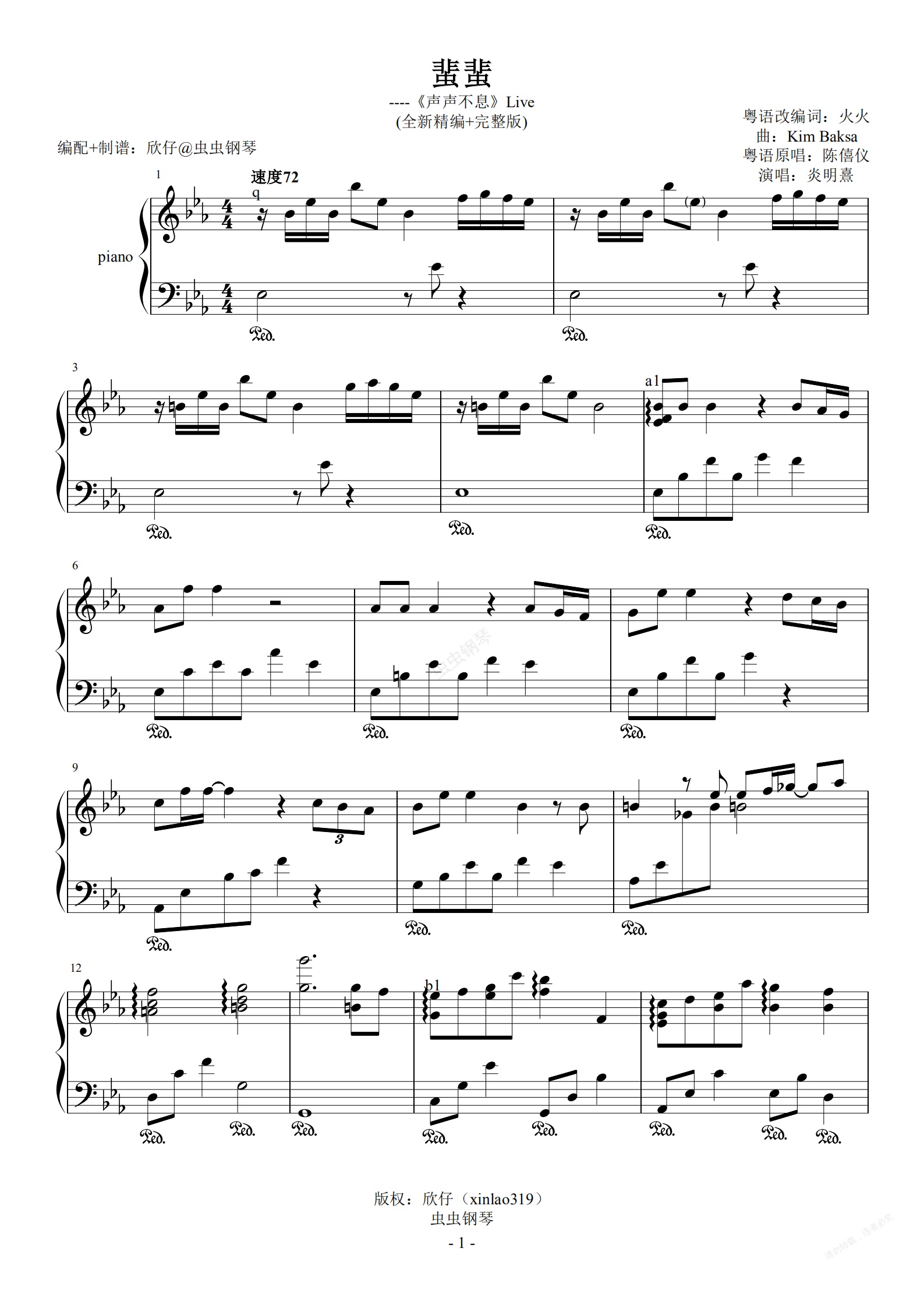 钢琴谱:炎明熹-降E《蜚蜚》(全新精编+完整版)