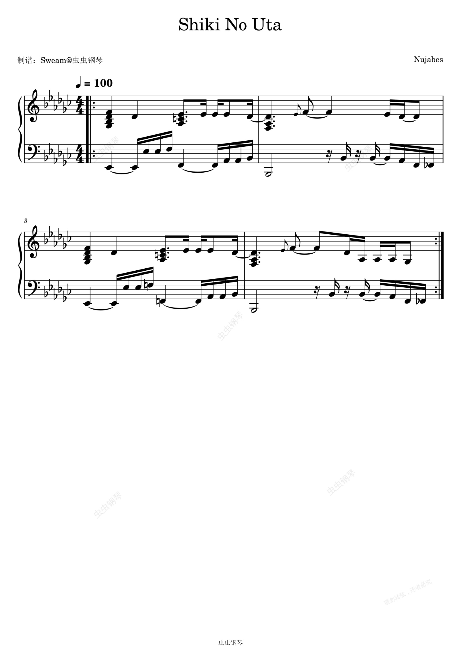 钢琴谱:Shiki No Uta(动画《混沌武士》原声曲选)-Nujabes