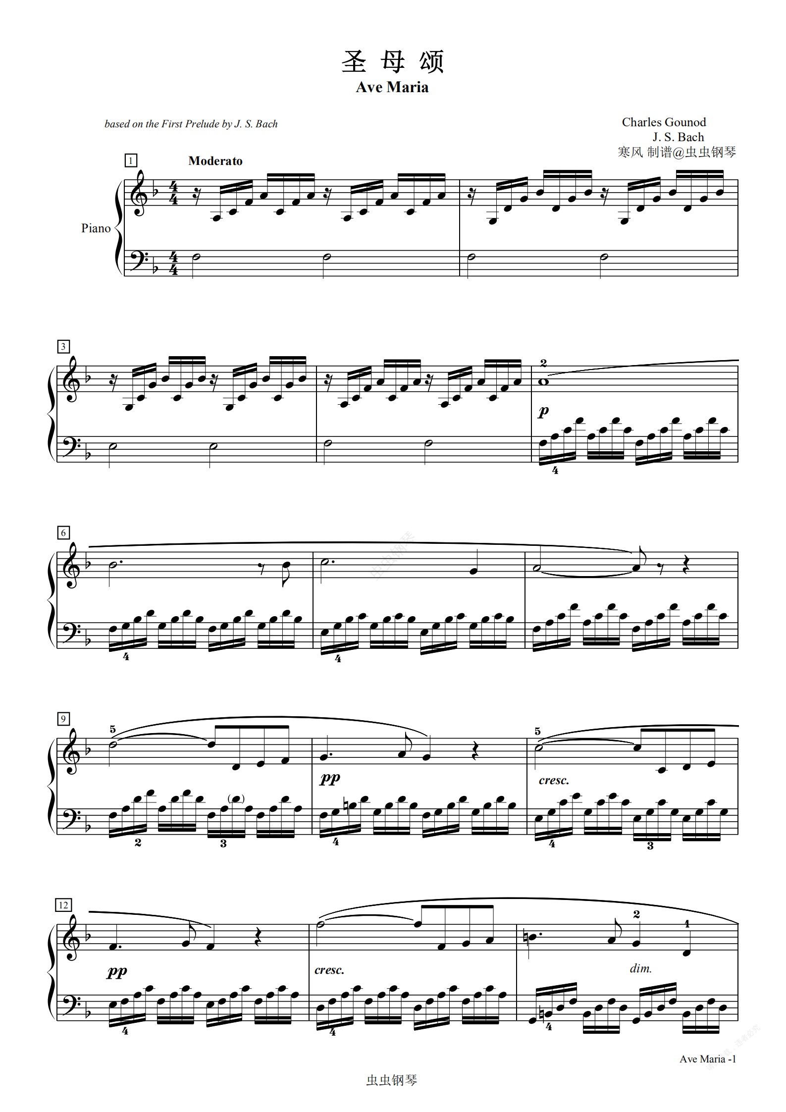 钢琴谱:圣母颂(简版)