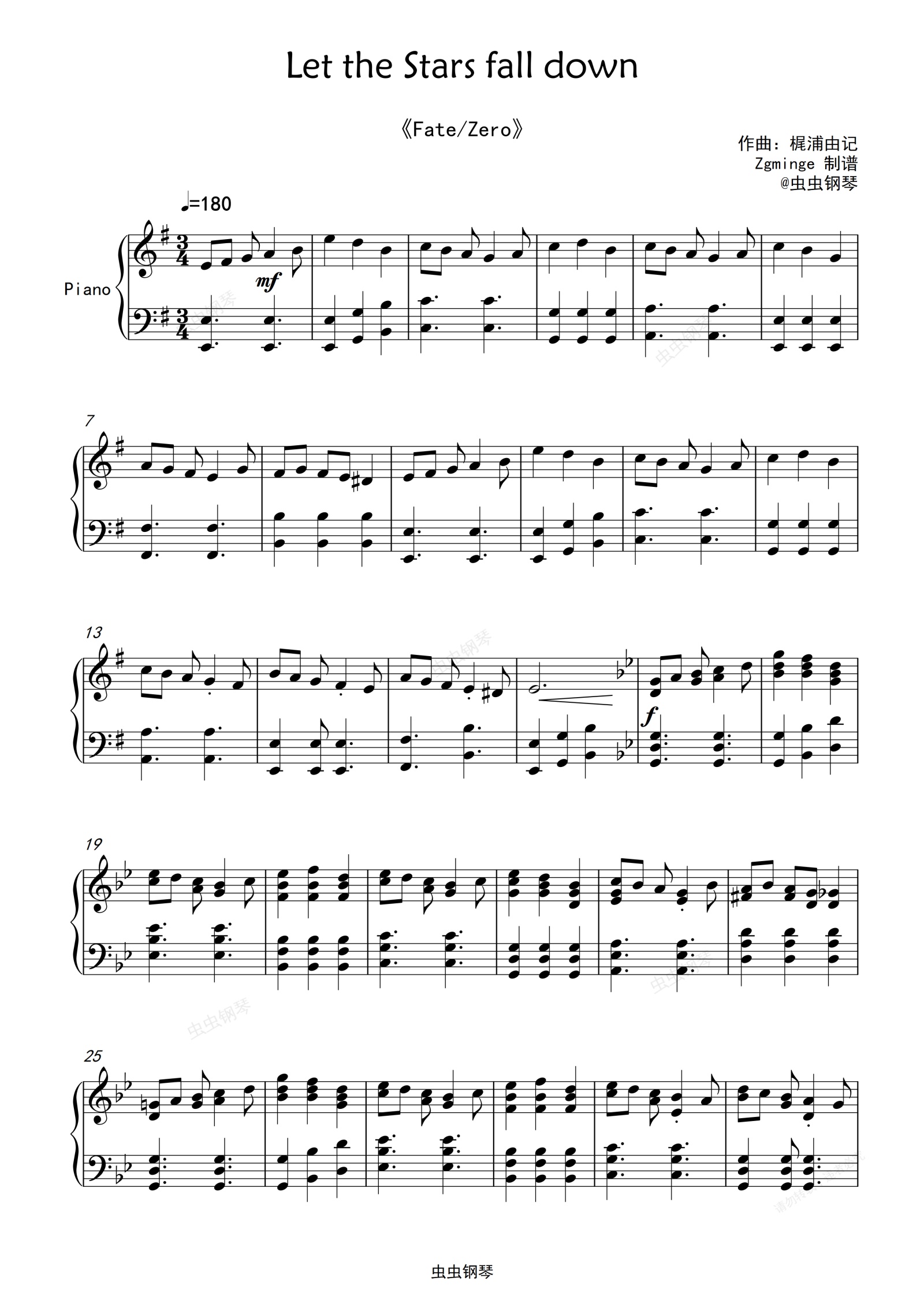 钢琴谱:Let the Stars fall down Fate/Zero 动画