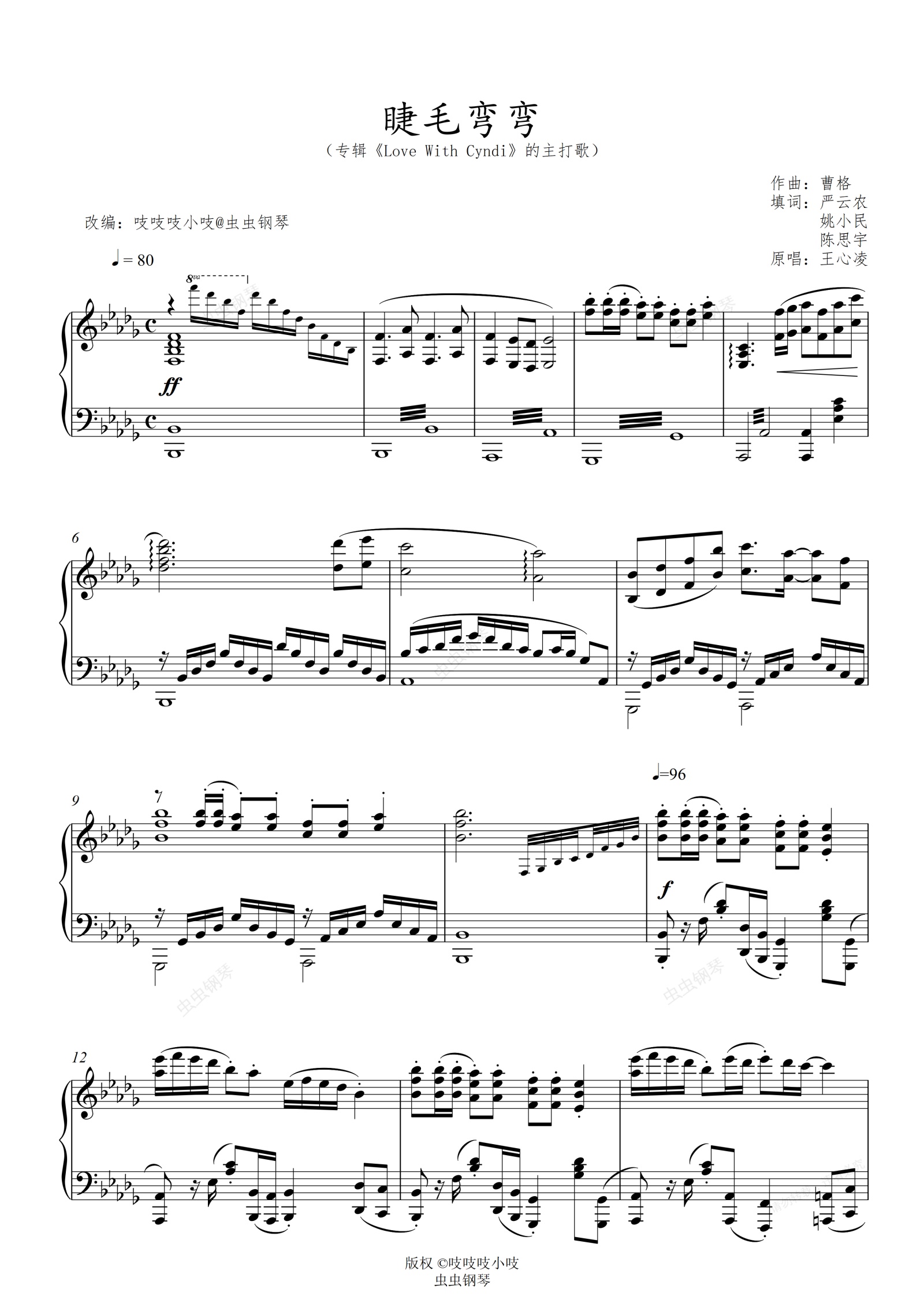 钢琴谱:睫毛弯弯 王心凌 吱吱改编版