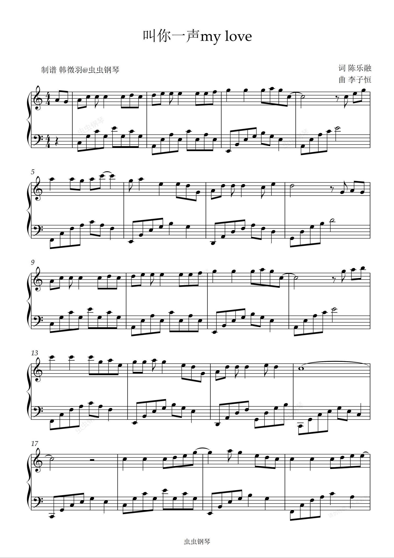 钢琴谱:小虎队叫你一声My Love