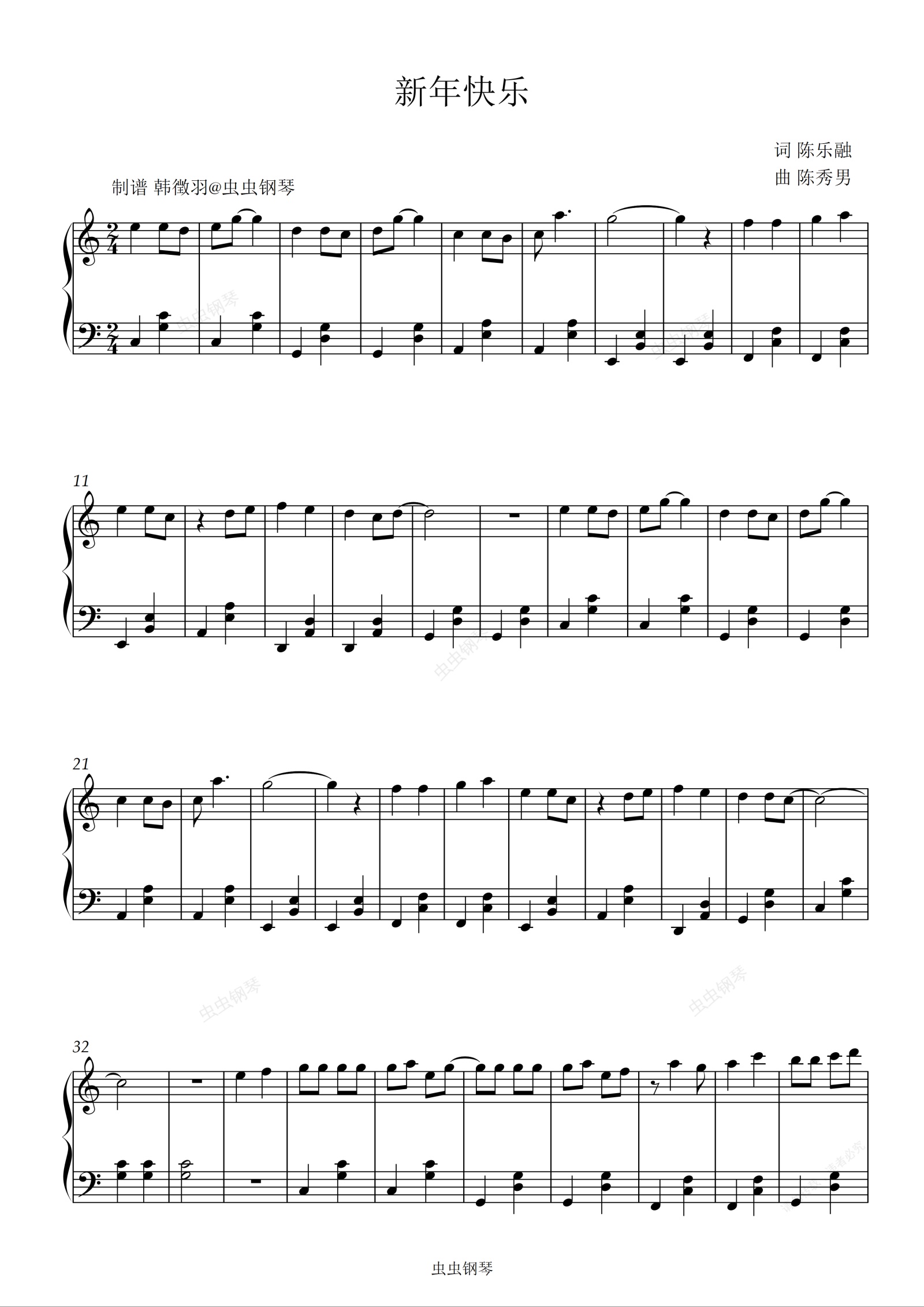 钢琴谱:小虎队 新年快乐