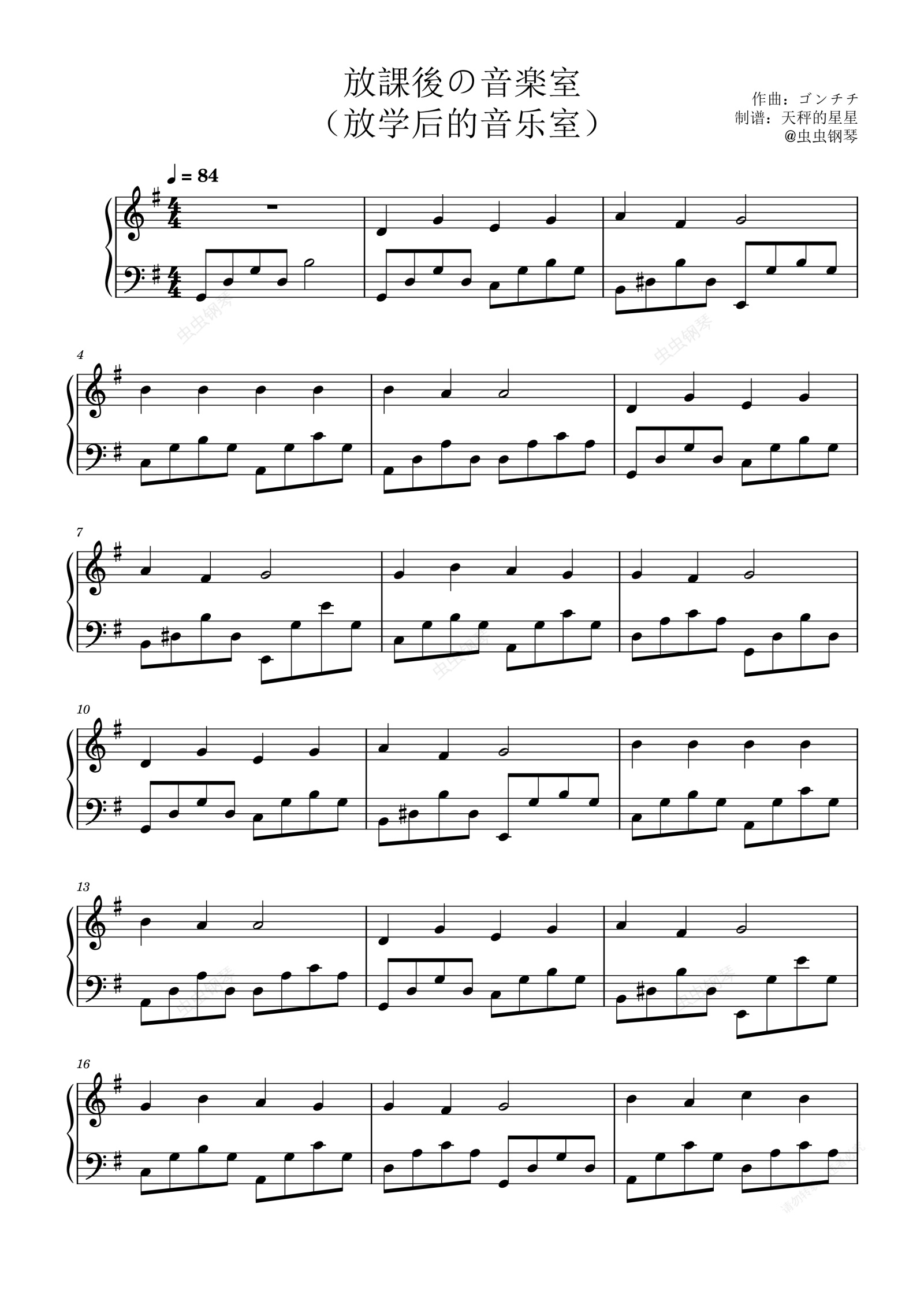 钢琴谱:放課後の音楽室(放学后的音乐室)