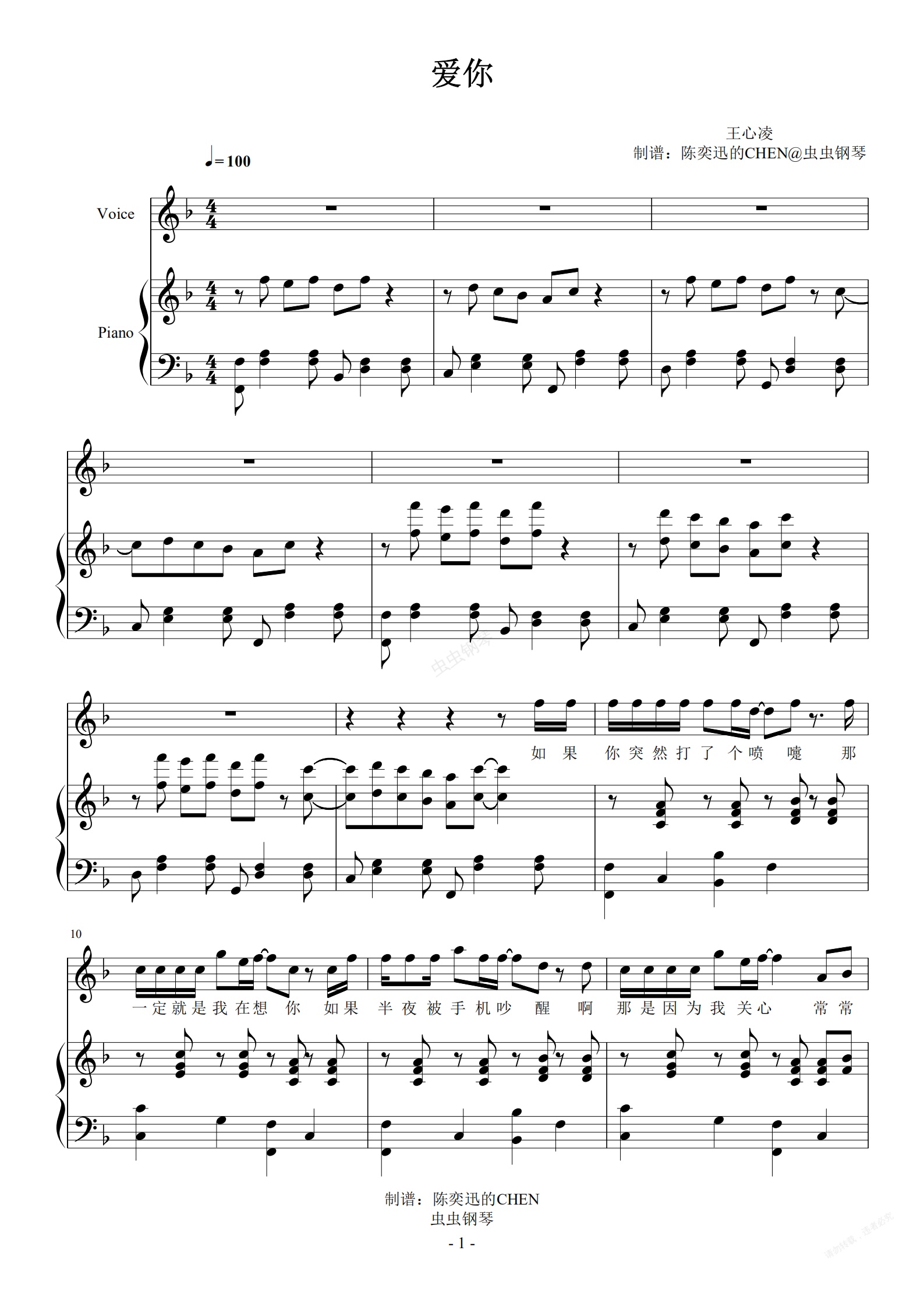 钢琴谱:爱你 完美弹唱谱【附歌词】