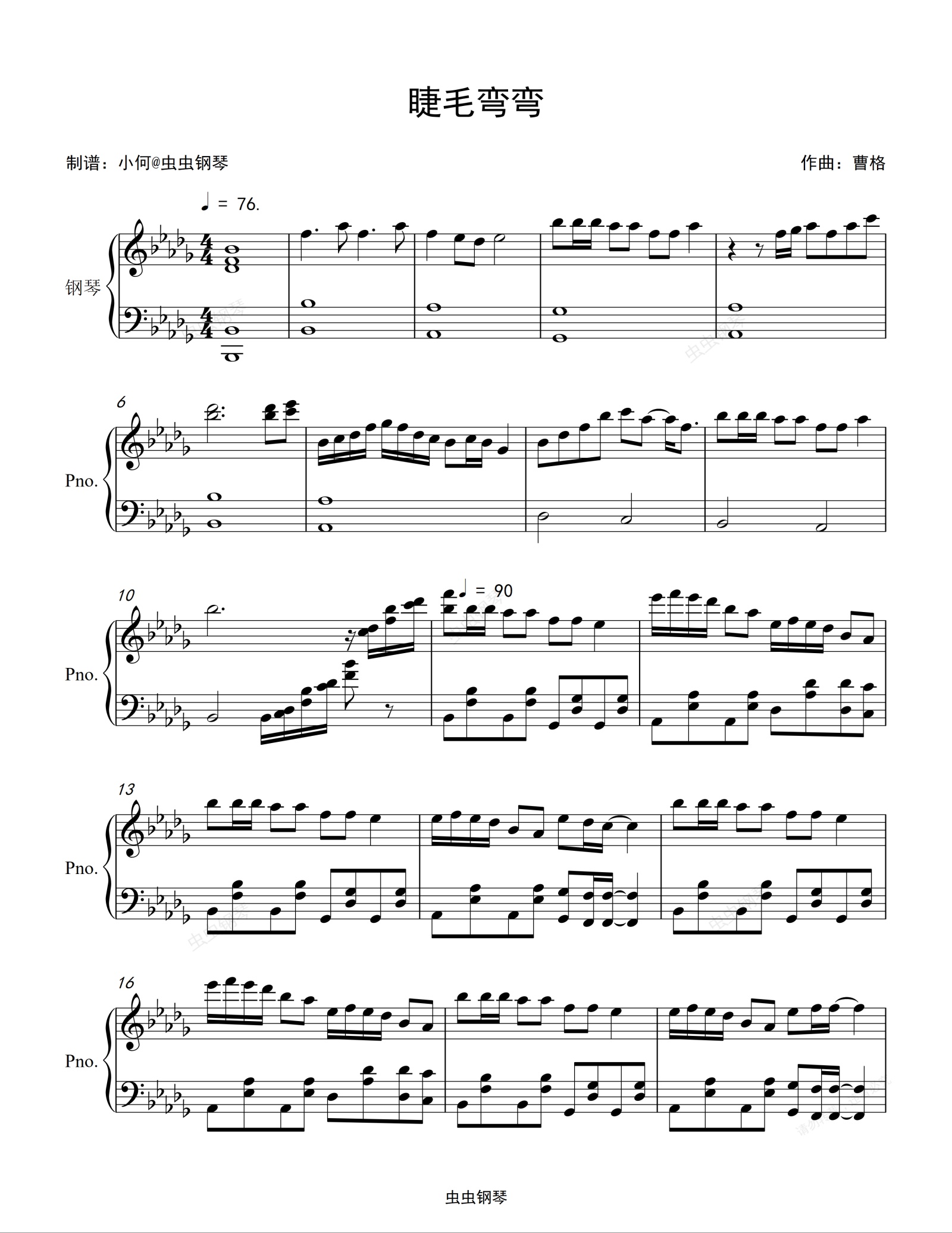 钢琴谱:睫毛弯弯-王心凌好听完美版