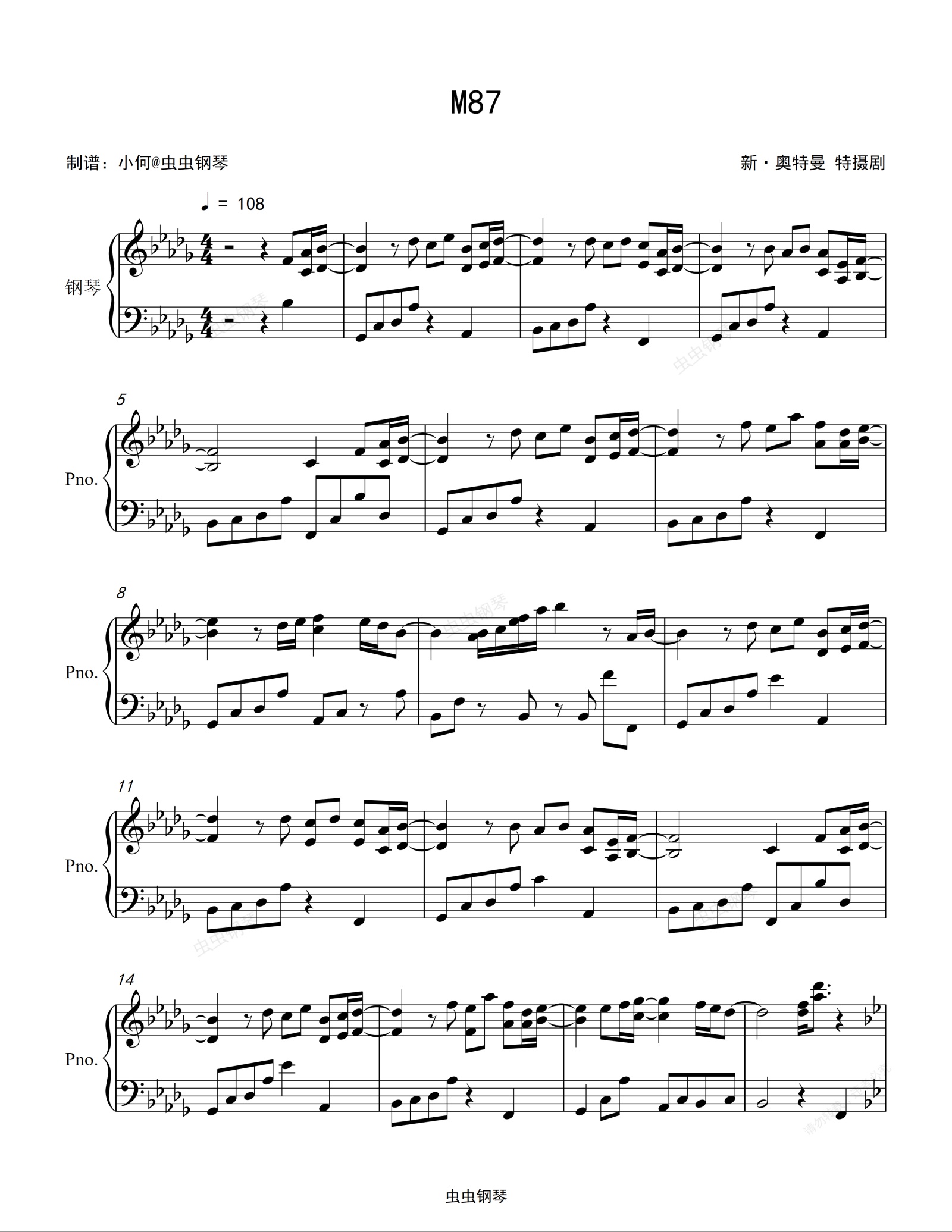 钢琴谱:M八七-米津玄师-新奥特曼主题曲
