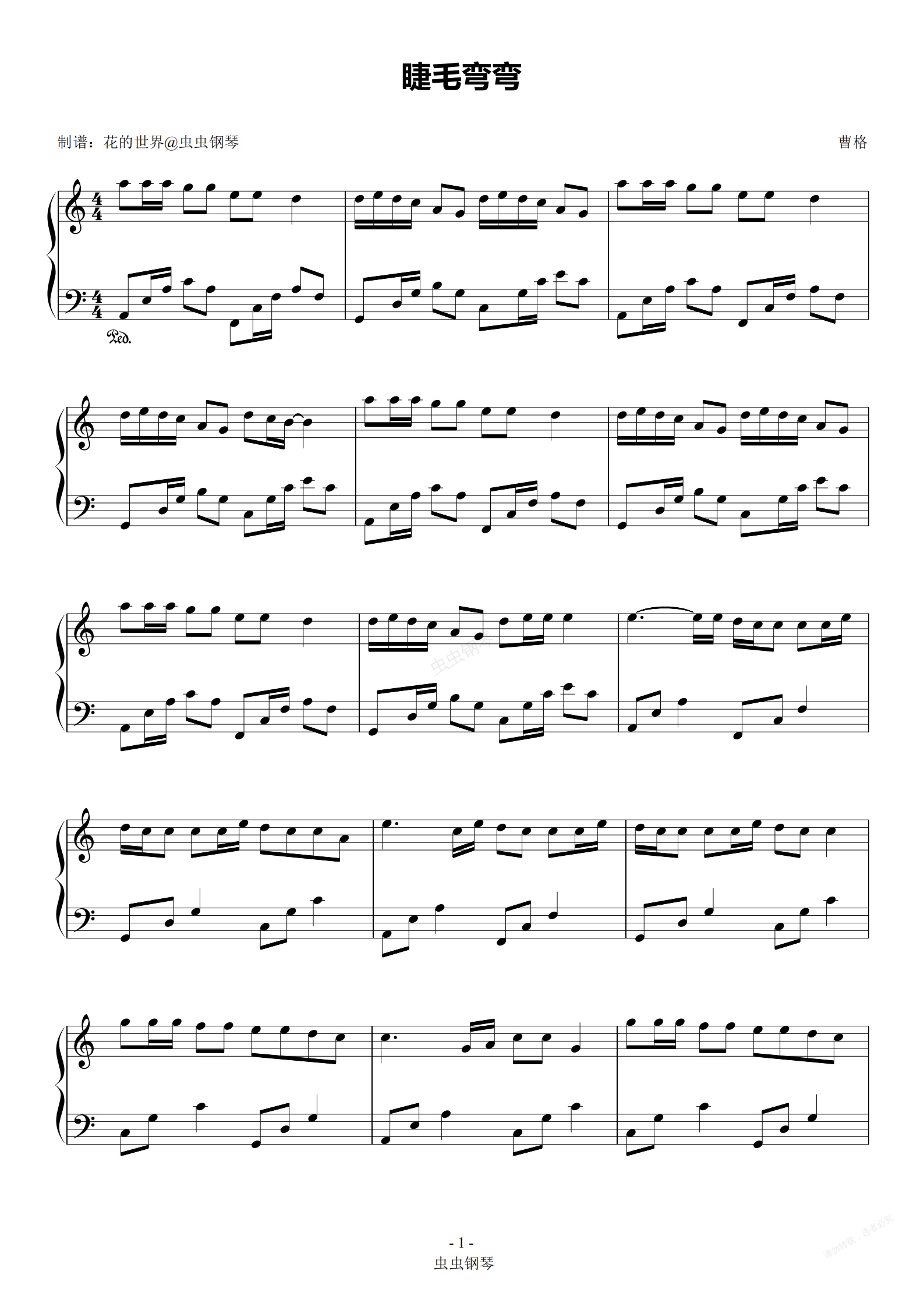 钢琴谱:睫毛弯弯 C调简易版 王心凌