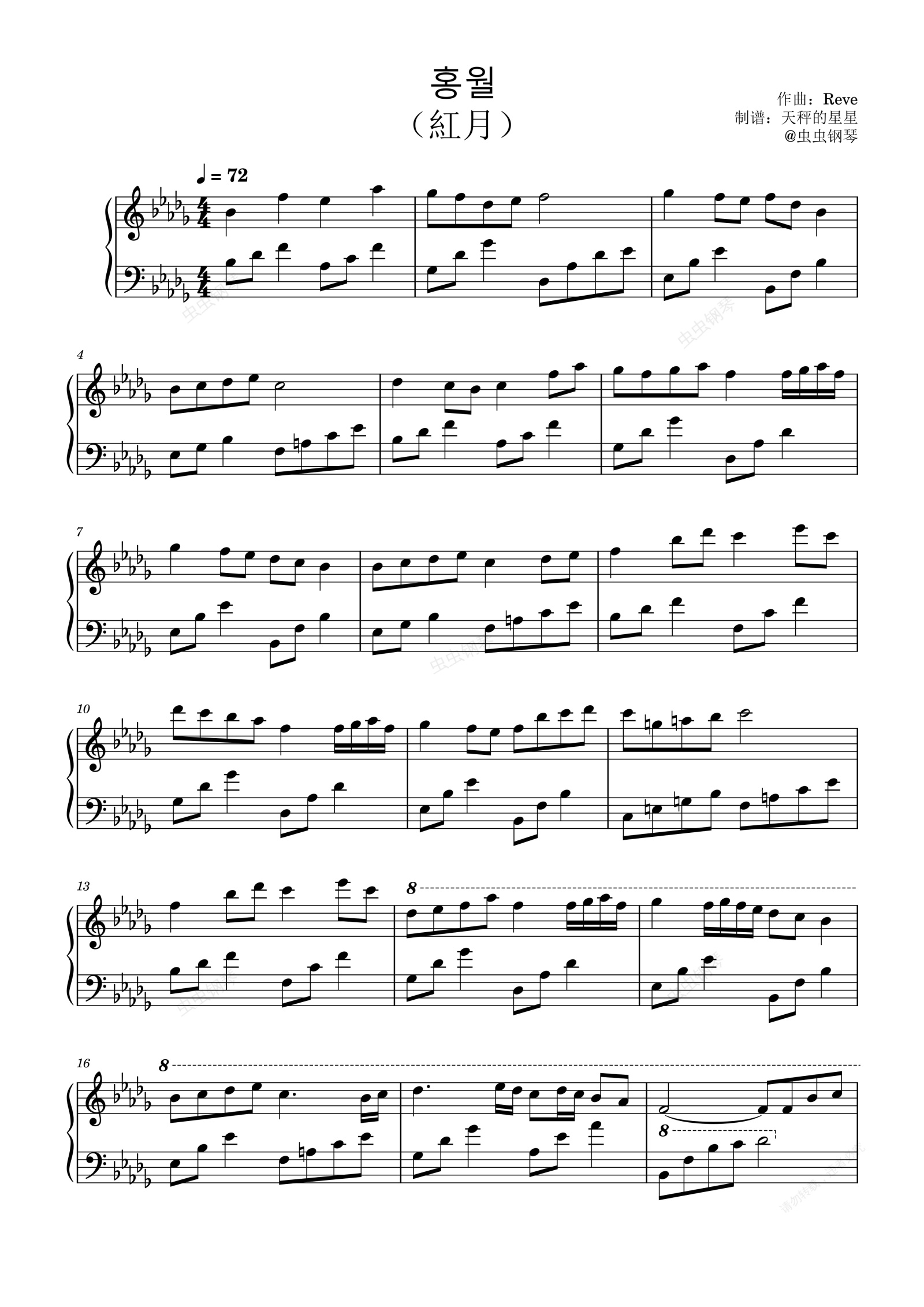钢琴谱:홍월(红月)--새와같이 OST 2nd (在一起 OST 2nd)