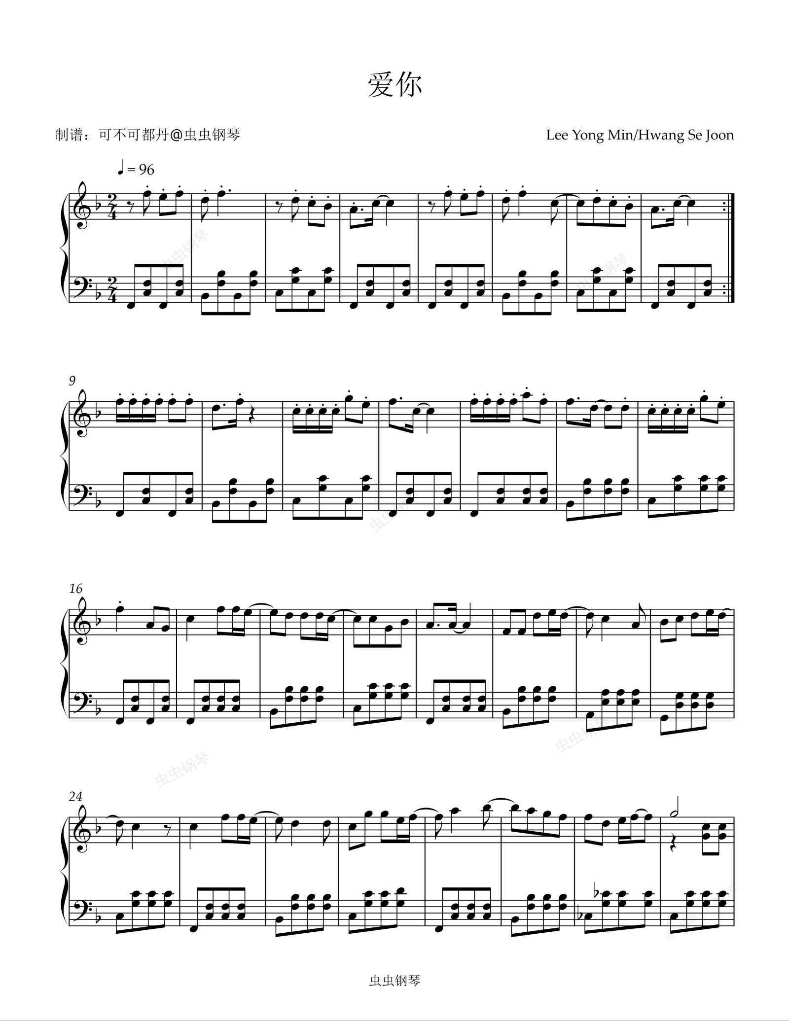 钢琴谱:甜心教主王心凌《爱你》简单入门版