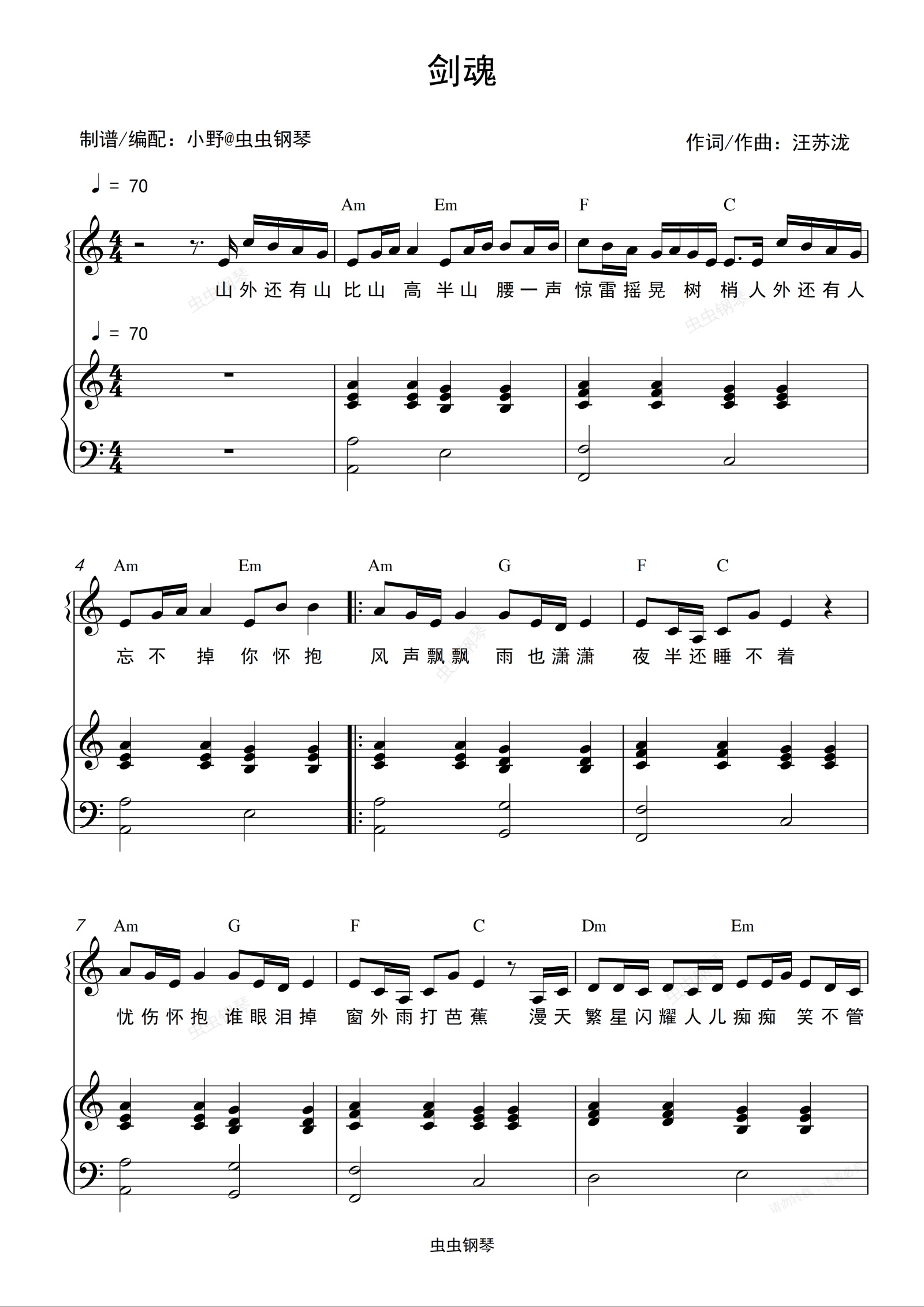 钢琴谱:剑魂(和弦弹唱版)
