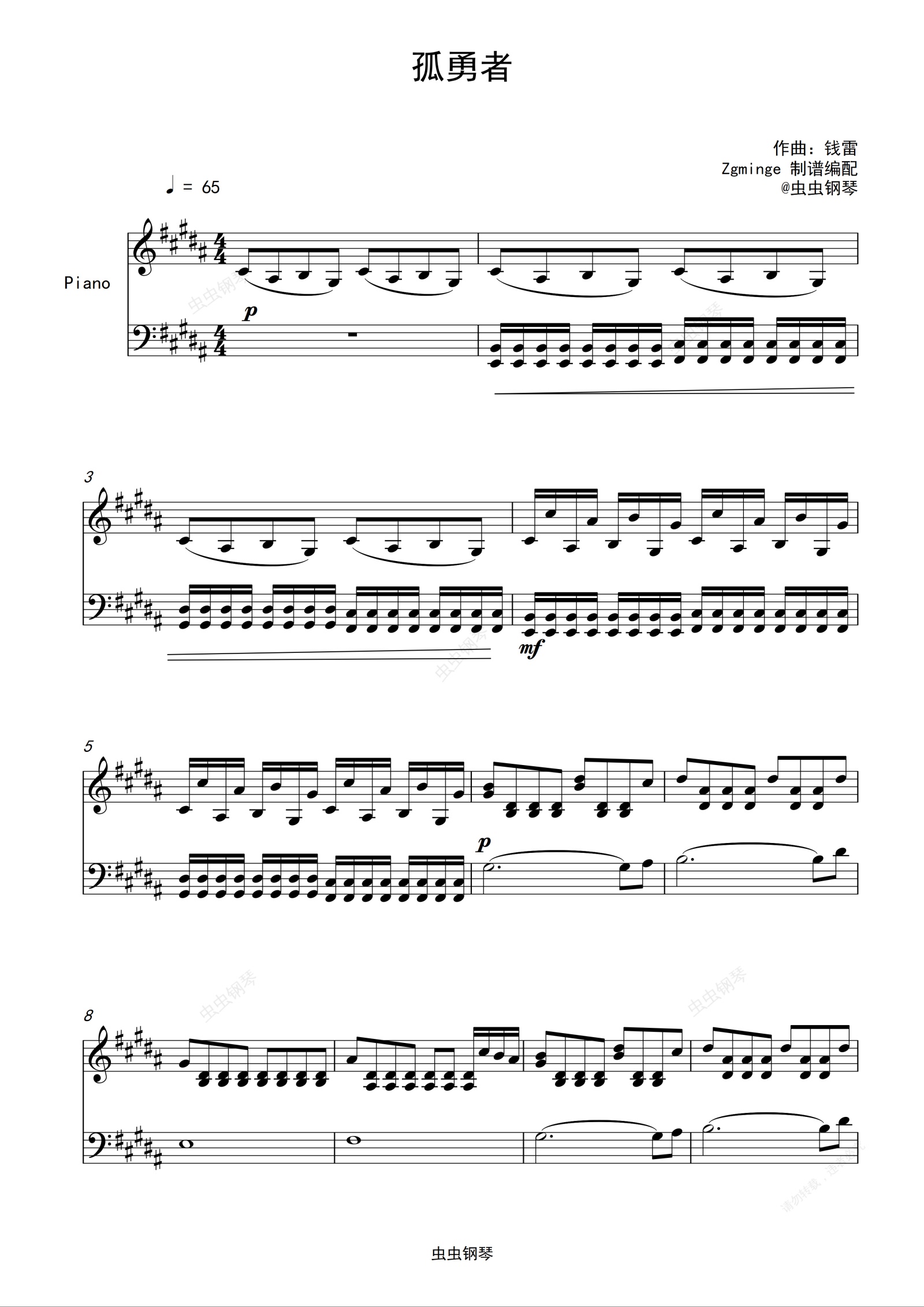 钢琴谱:孤勇者 完美弹唱版 (贴原唱干声)
