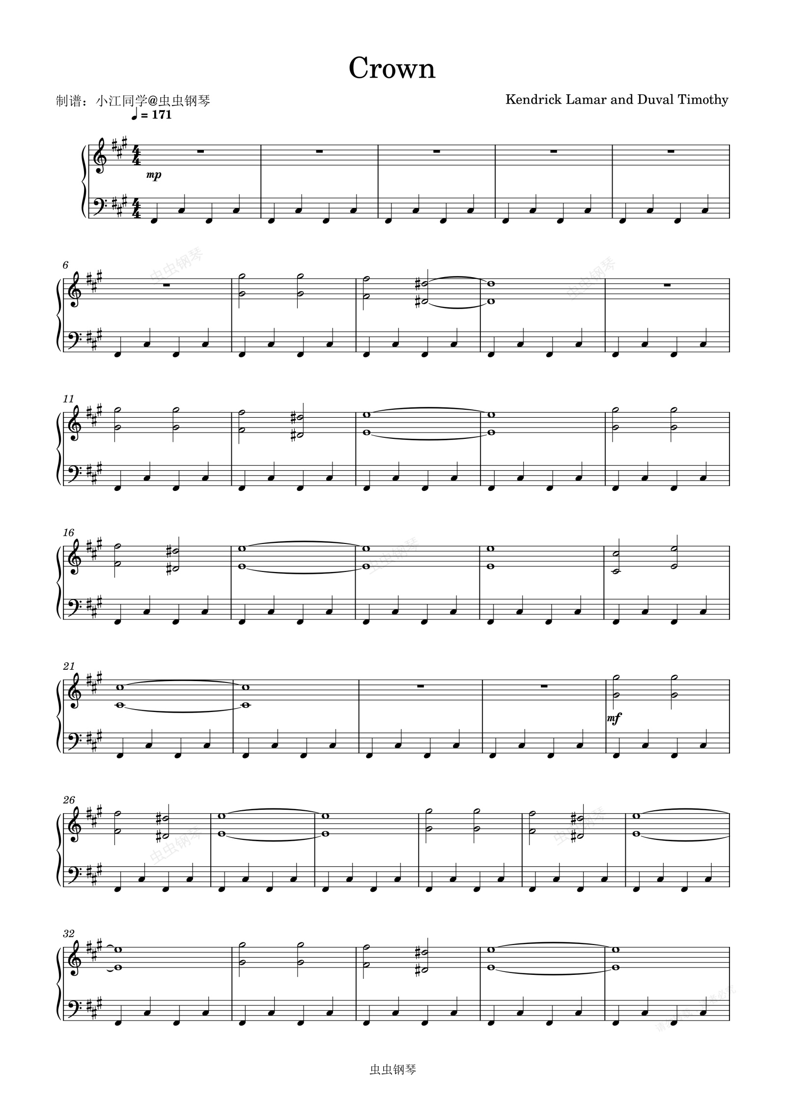 钢琴谱:Crown Kendrick Lamar / Duval Timothy