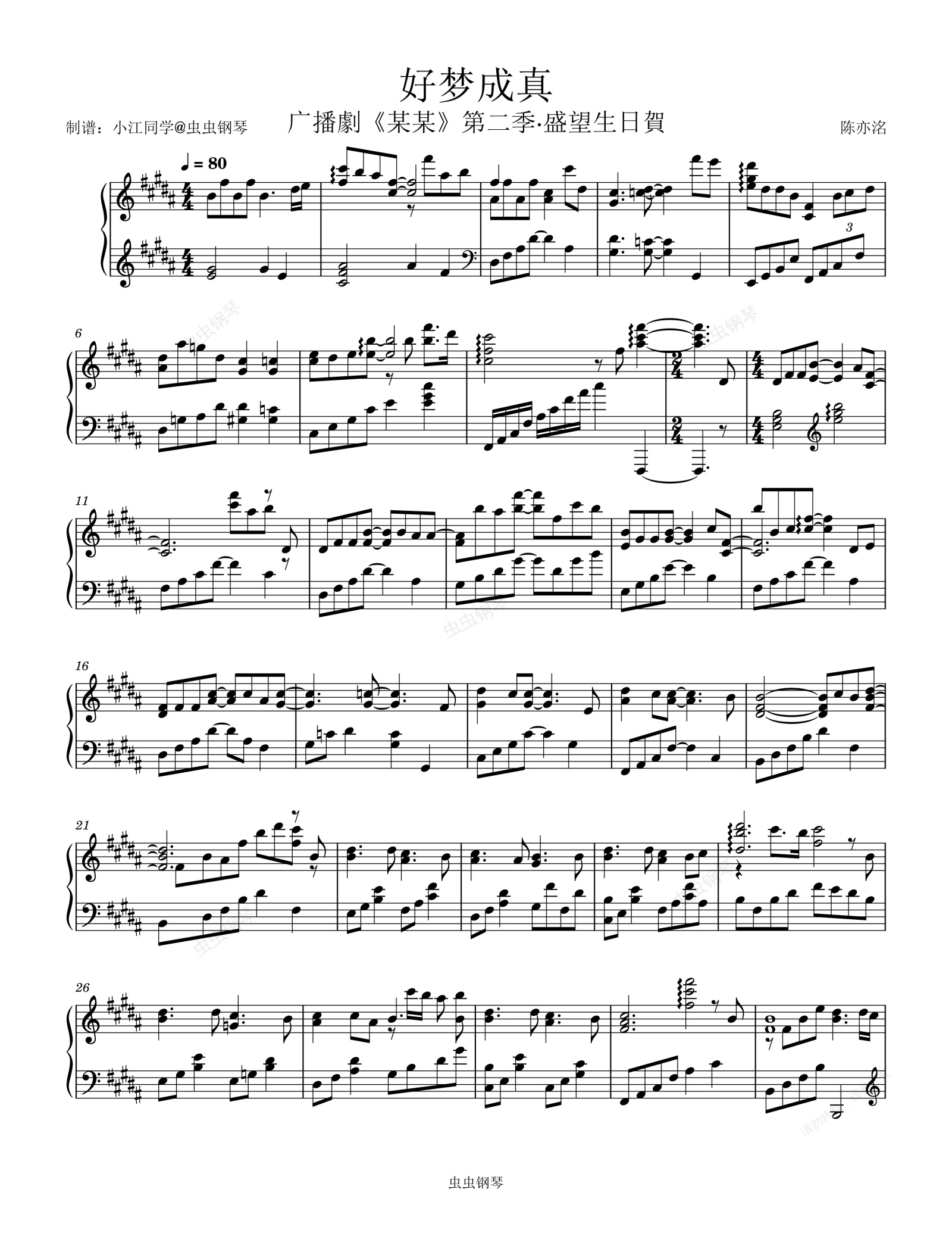 钢琴谱:好梦成真 广播劇《某某》第二季·盛望生日賀