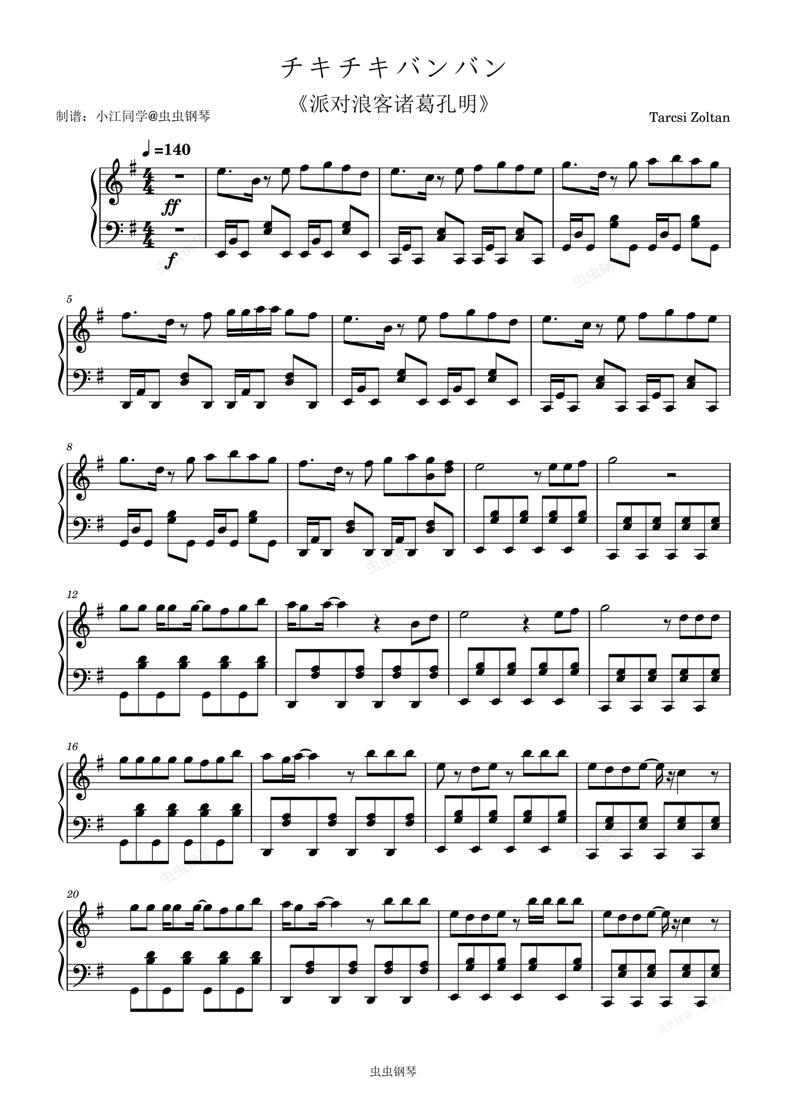 钢琴谱:チキチキバンバン《派对浪客诸葛孔明》
