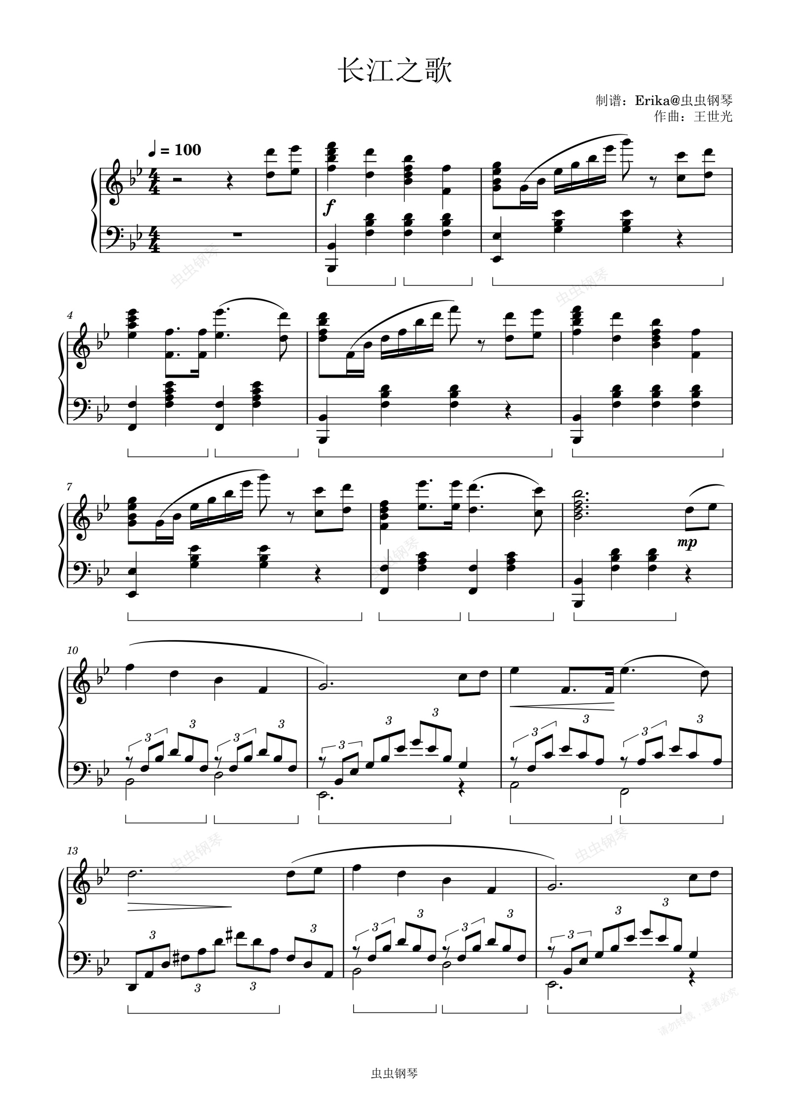 钢琴谱:长江之歌(钢琴独奏即兴版降B调)